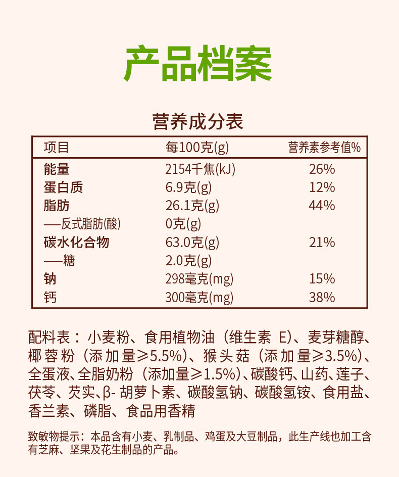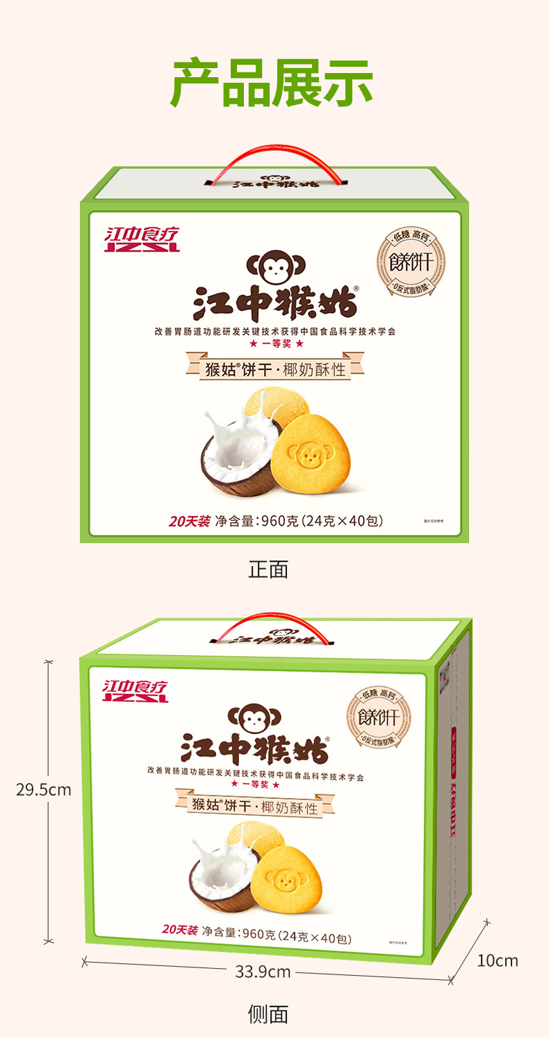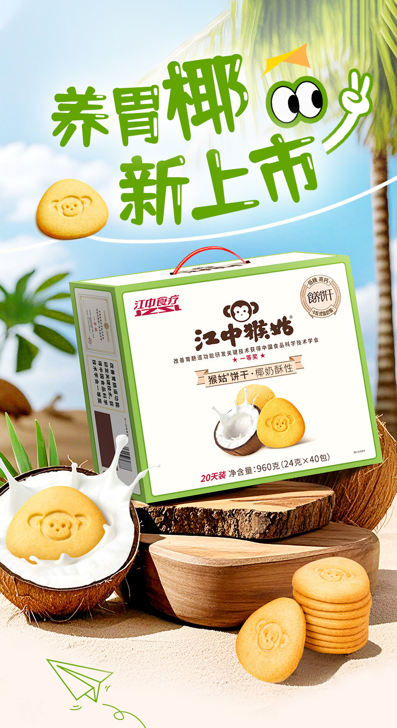江中猴姑椰奶猴头菇饼干养胃低糖高钙 432g/盒 18包 2025年11-2026年1月生产 保质期15个月