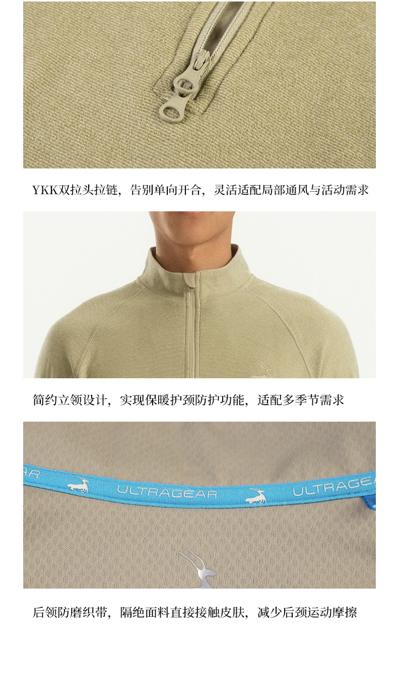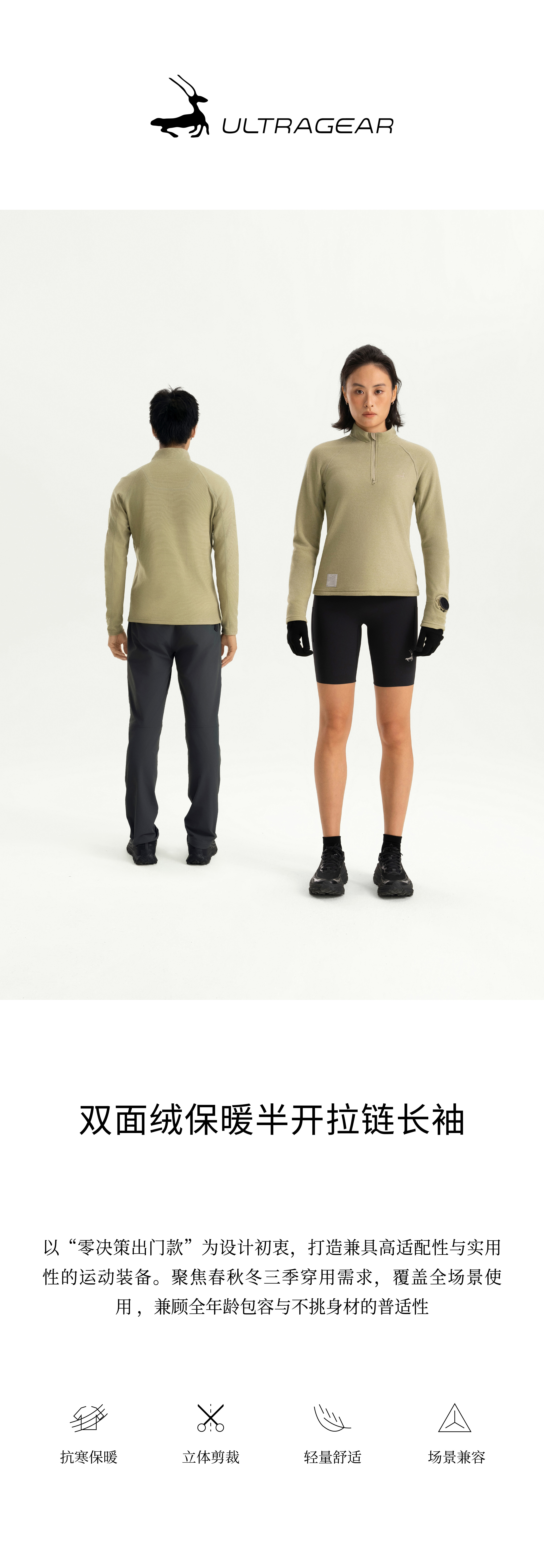 优极UG 男女款双面绒保暖半开拉链长袖衫