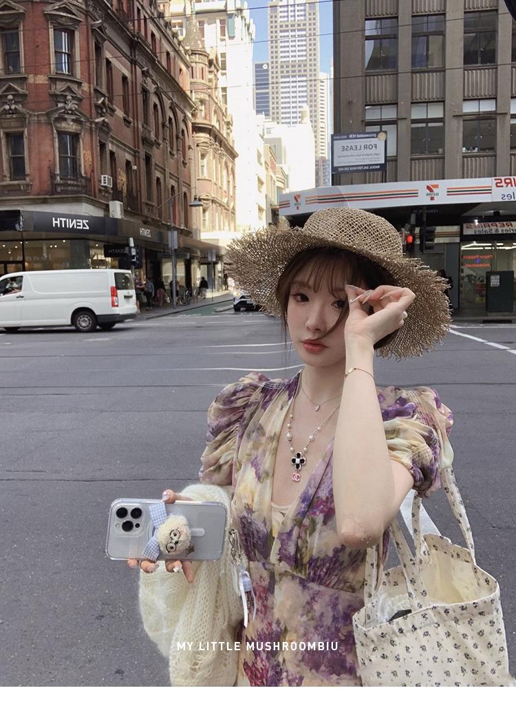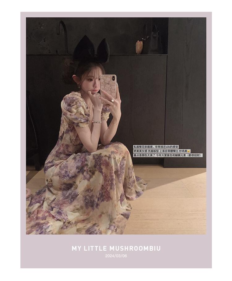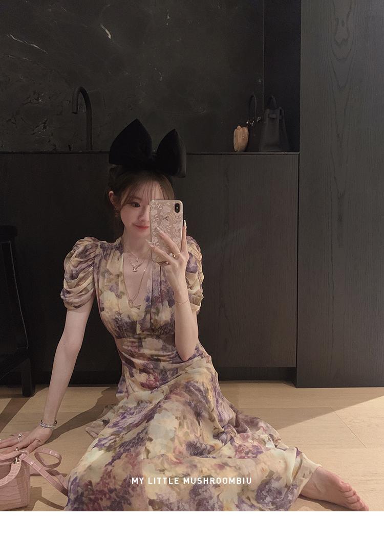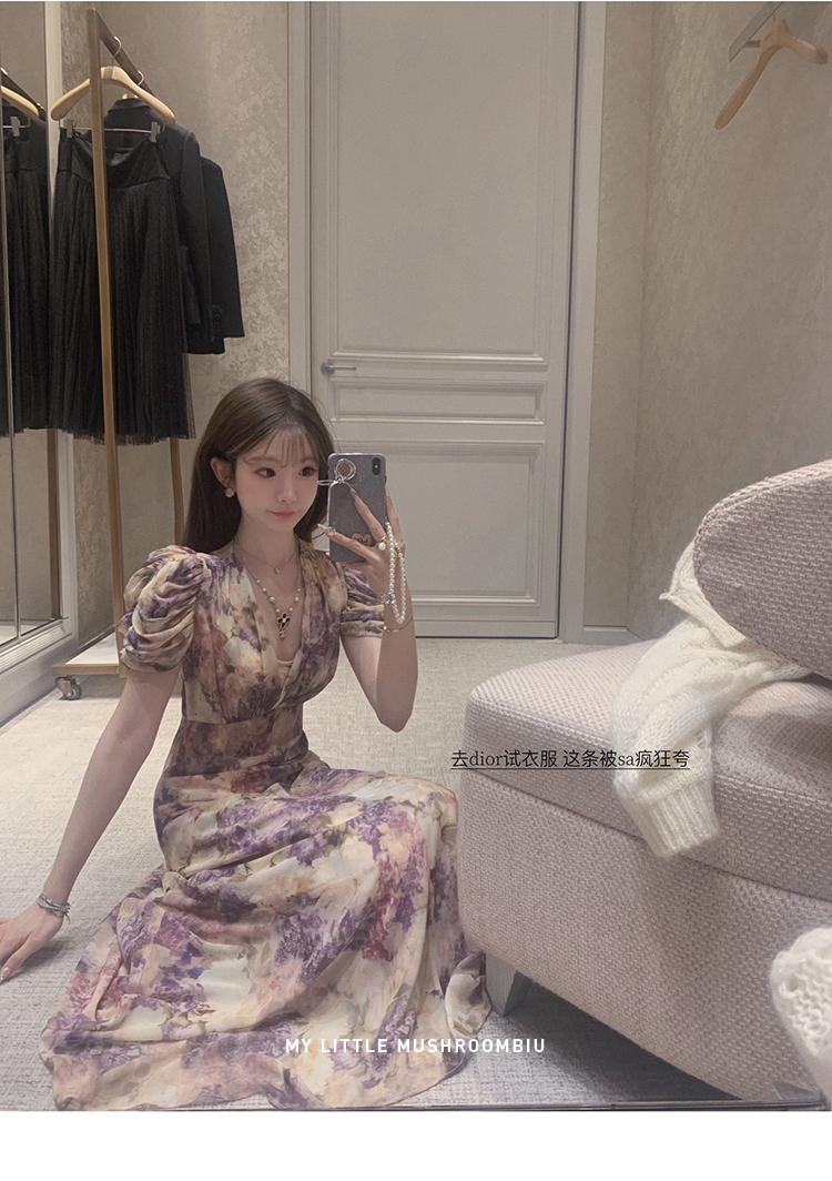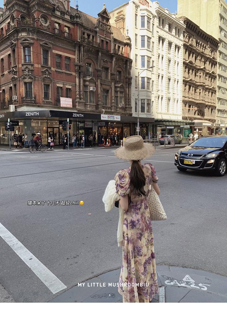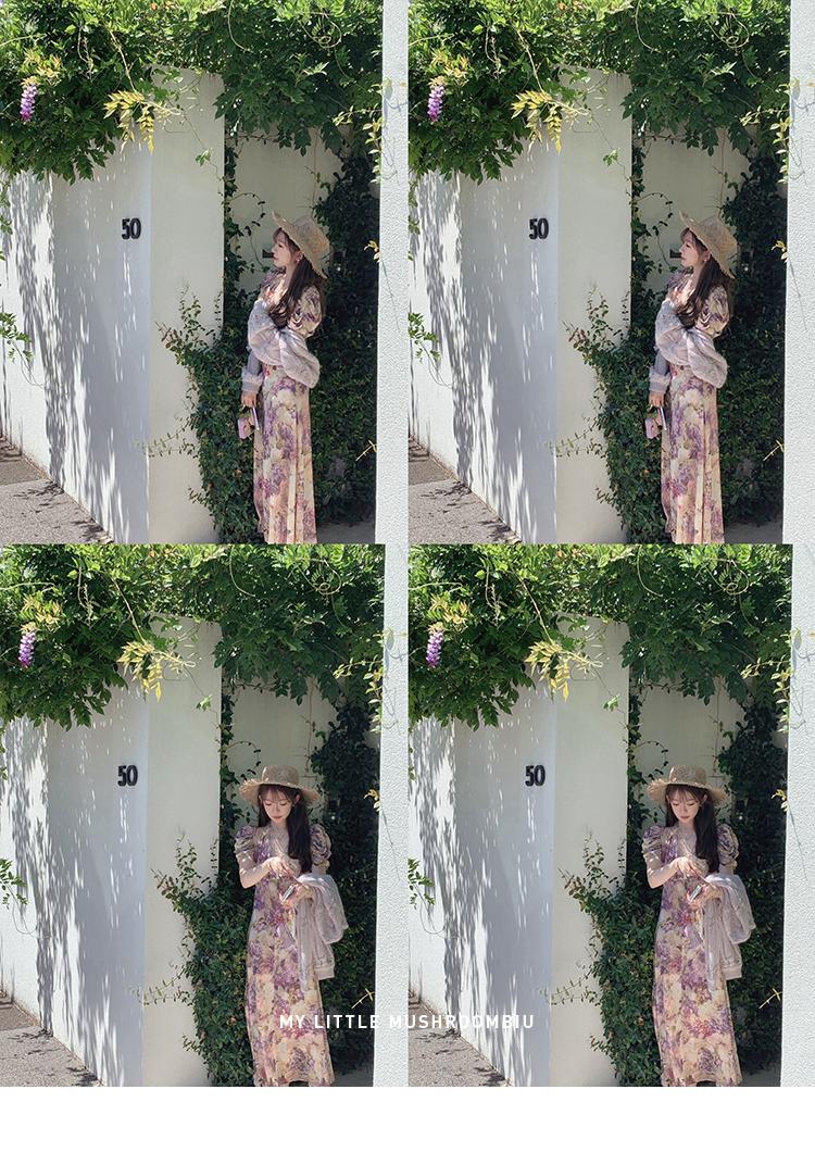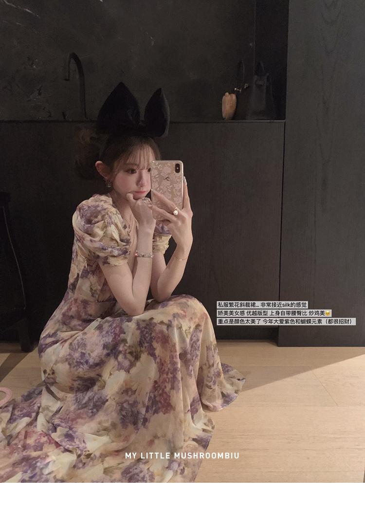 金蘑菇菇 似锦/私藏两条印花裙裙 水墨收腰连衣裙