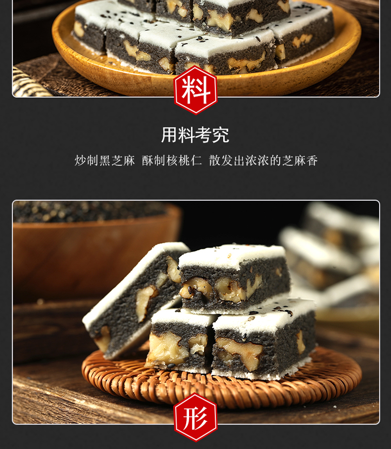 【配料表】 食用葡萄糖、黑芝麻、小麦粉、糯米、菜籽油、核桃仁、水等