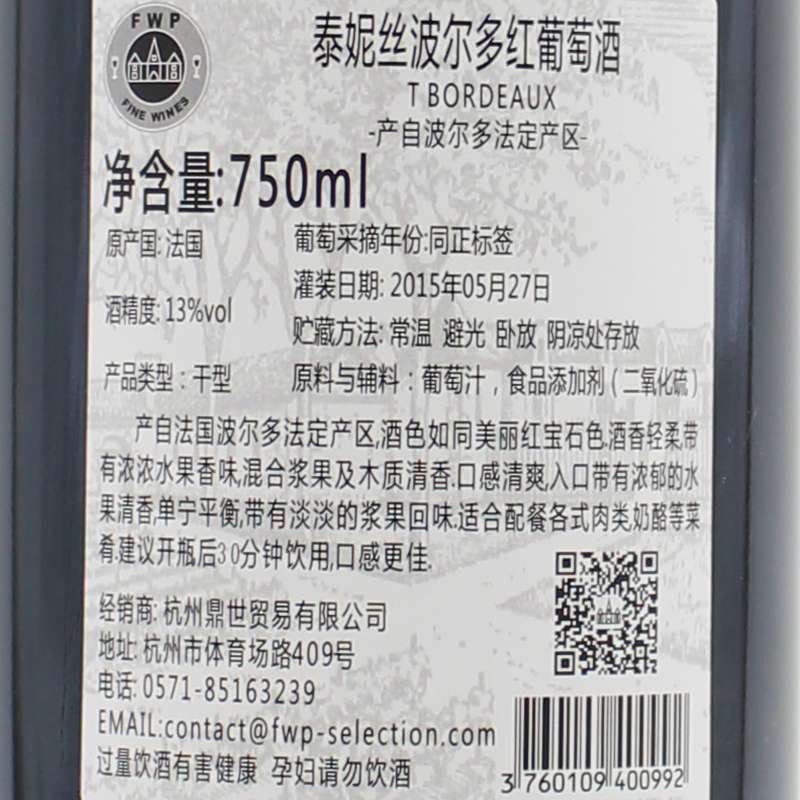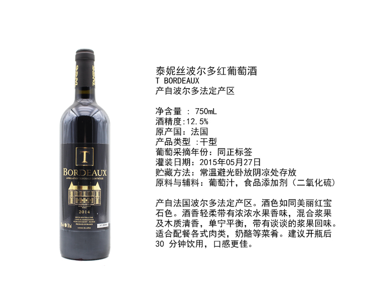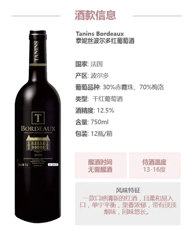 【整箱购买】泰妮丝-波尔多红葡萄酒 Tanins Bordeaux 6*750ml