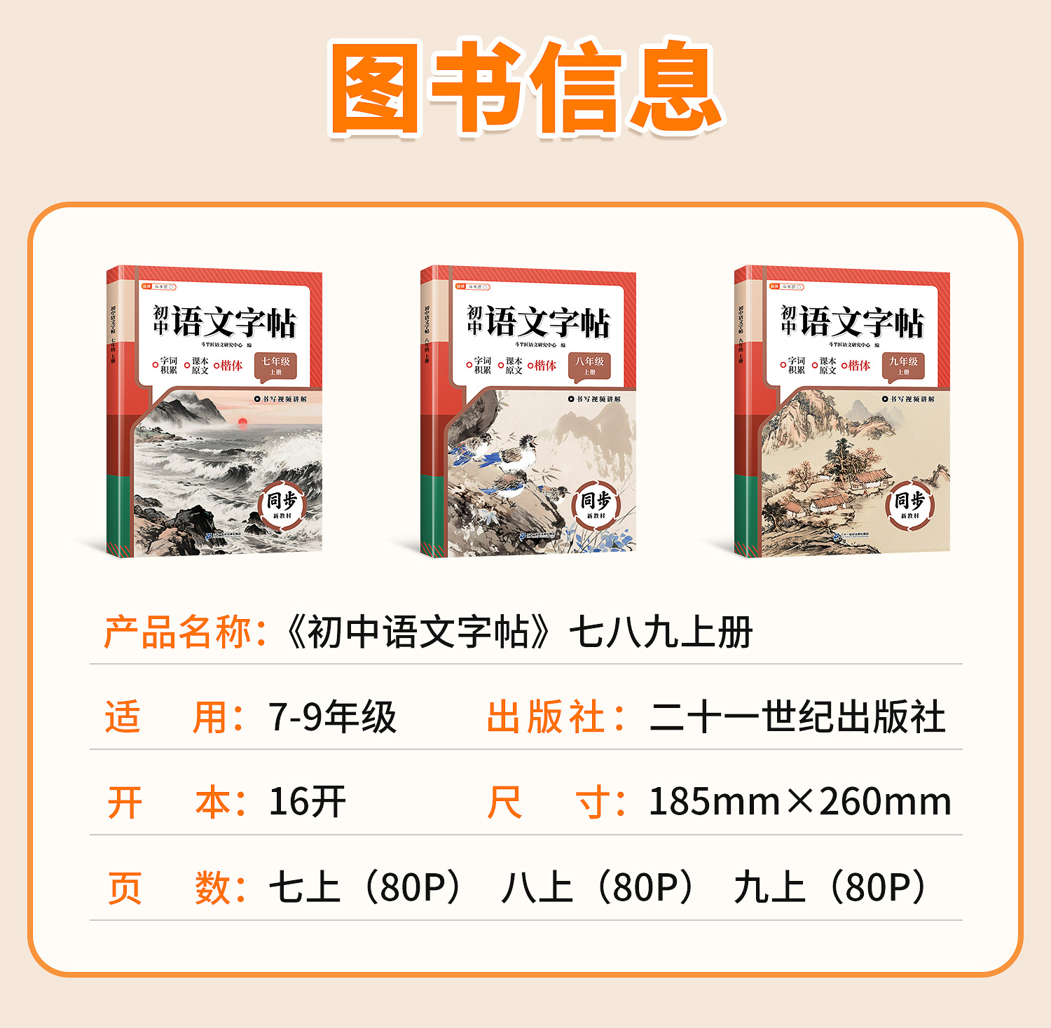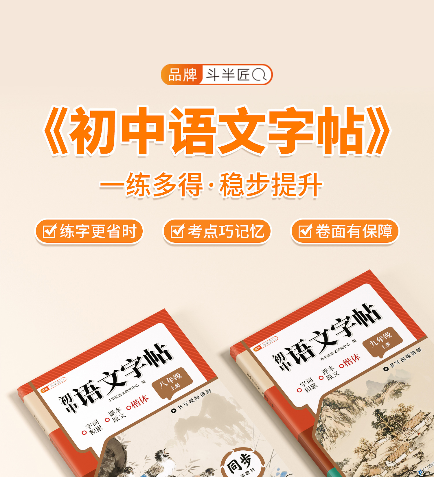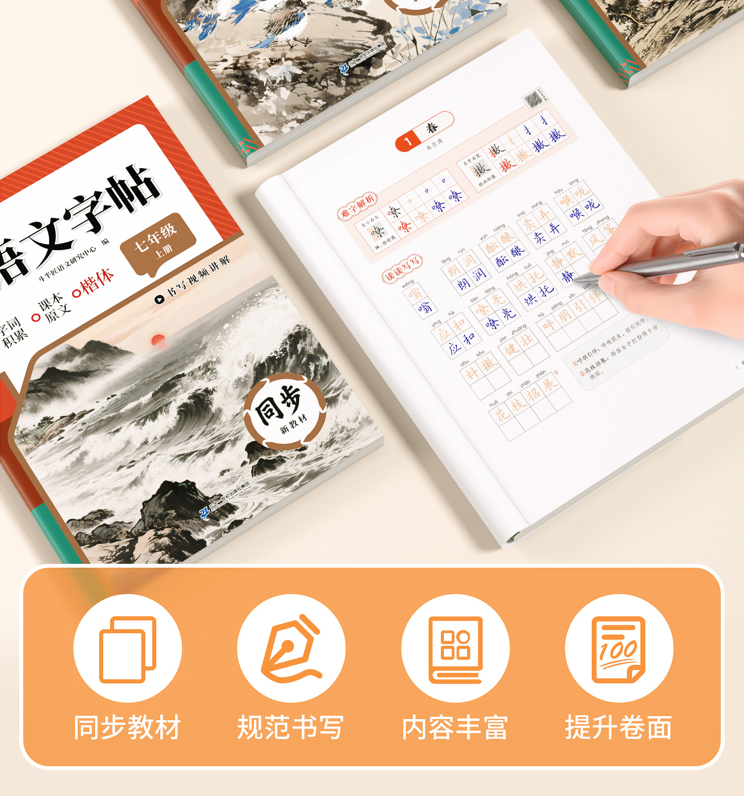 【斗半匠】初中七年级上册语文练字帖英语八九预习暑假提升书写本