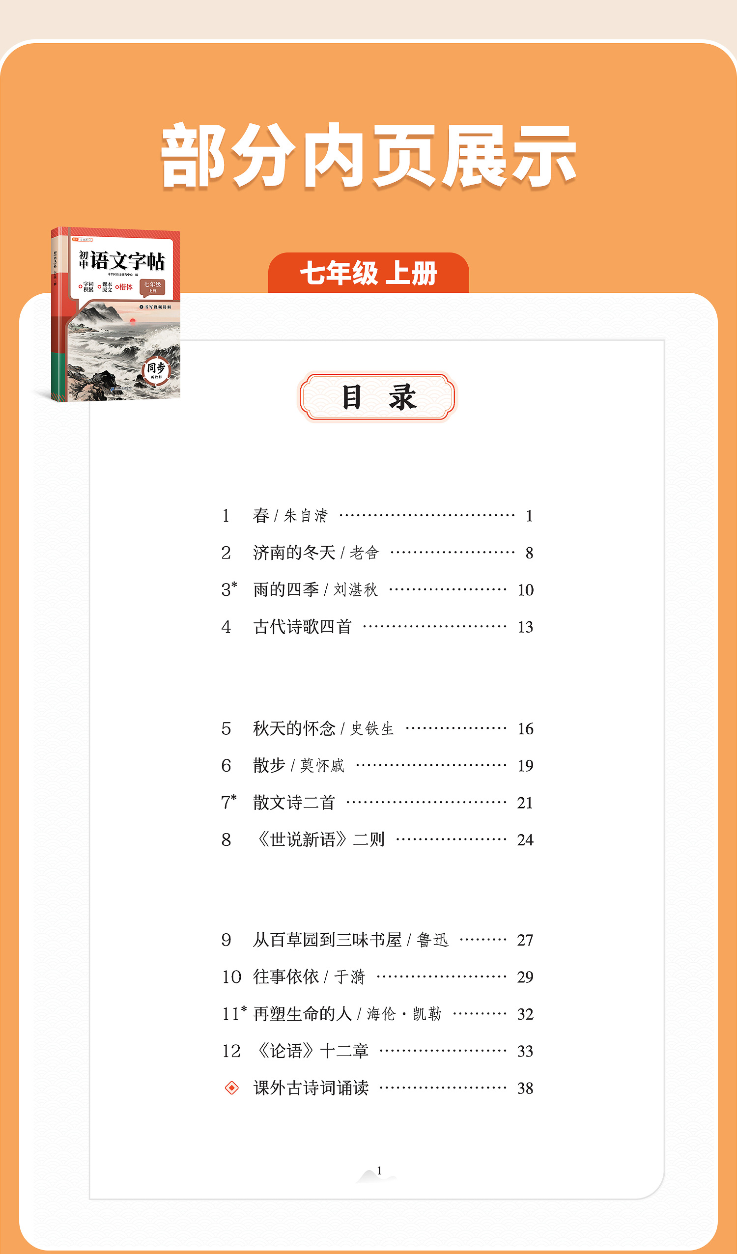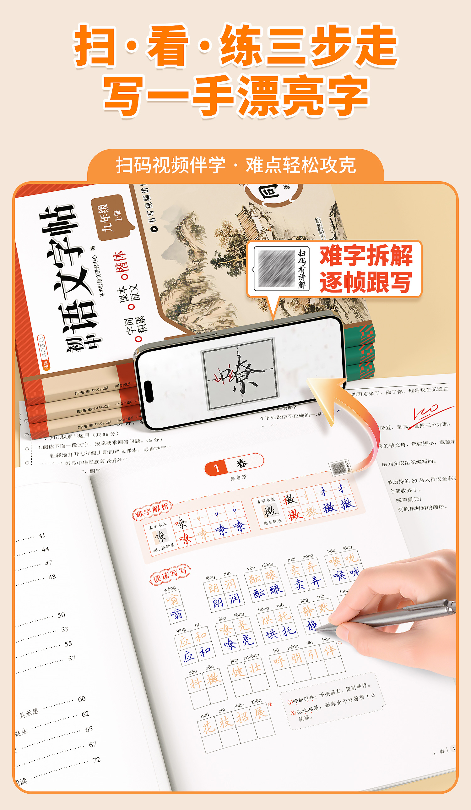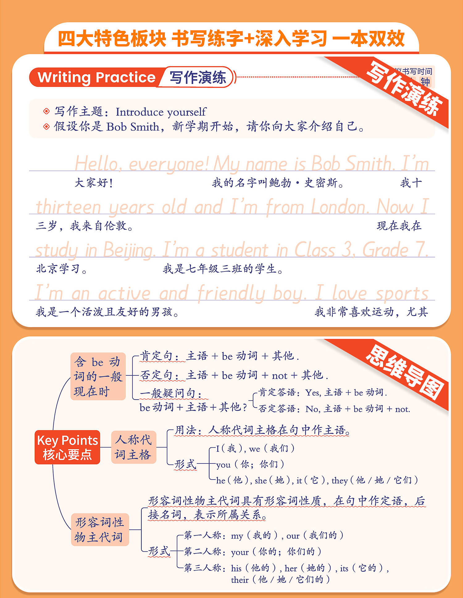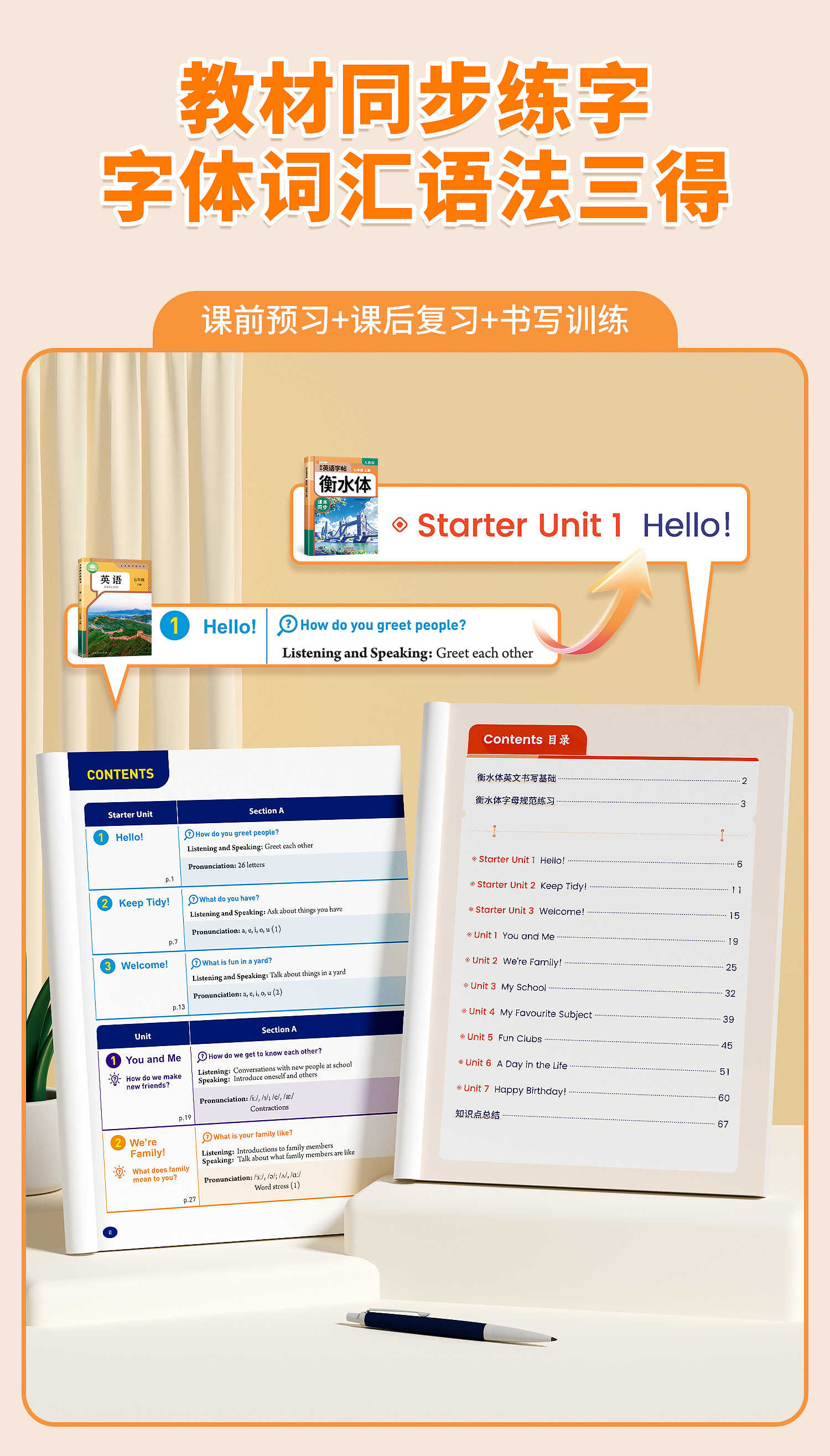 【斗半匠】初中七年级上册语文练字帖英语八九预习暑假提升书写本