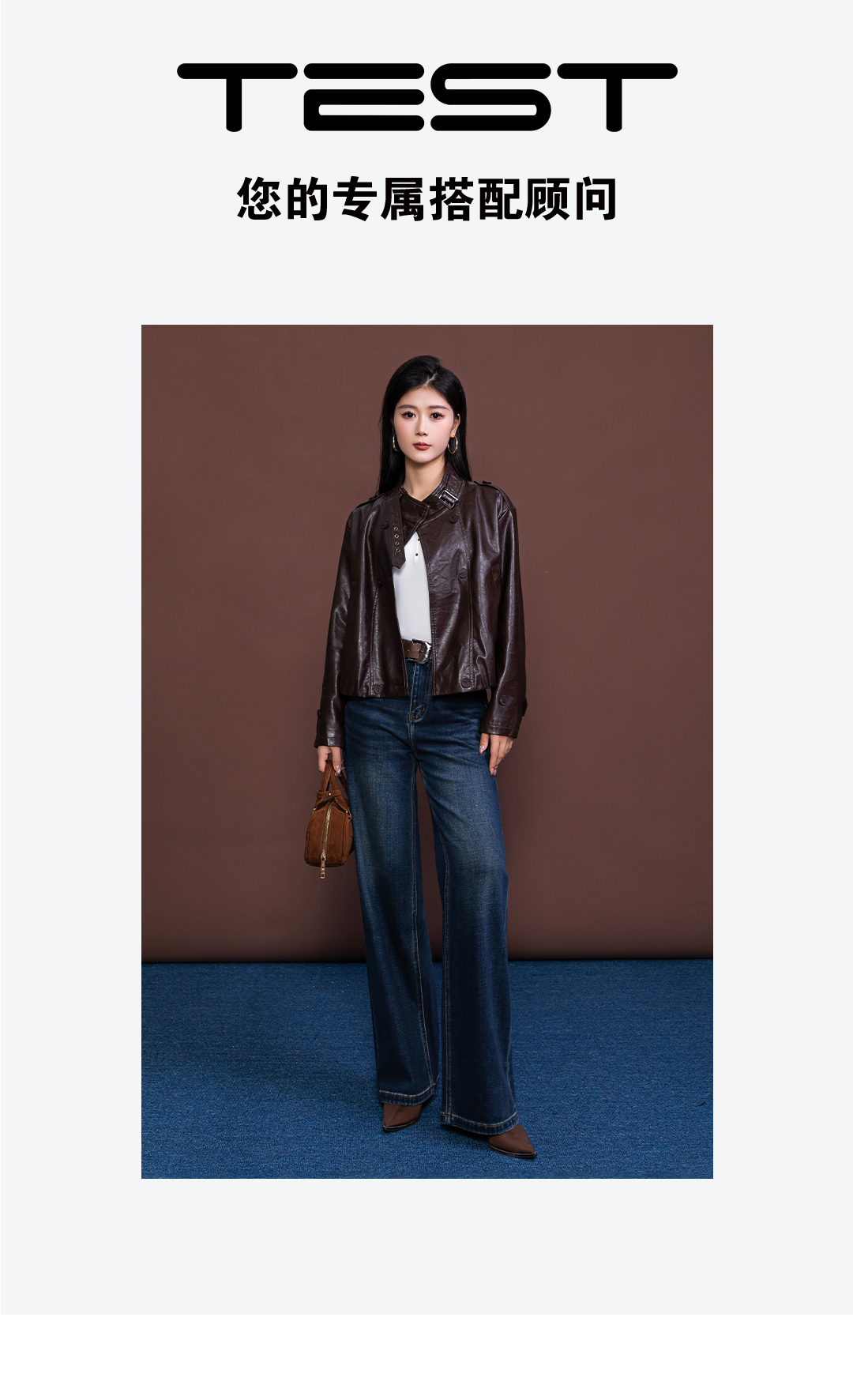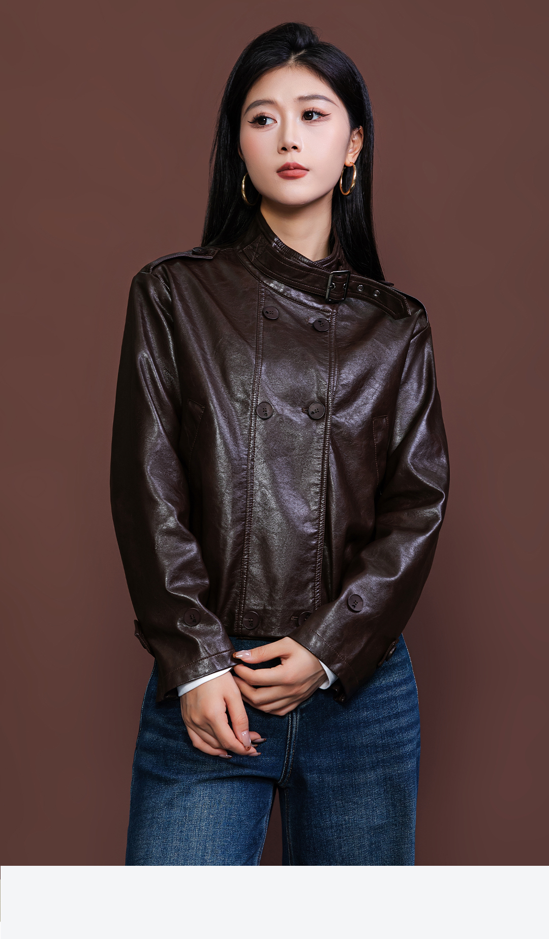 冬上新复古棕轻松打造酷飒街头风皮衣夹克2254086