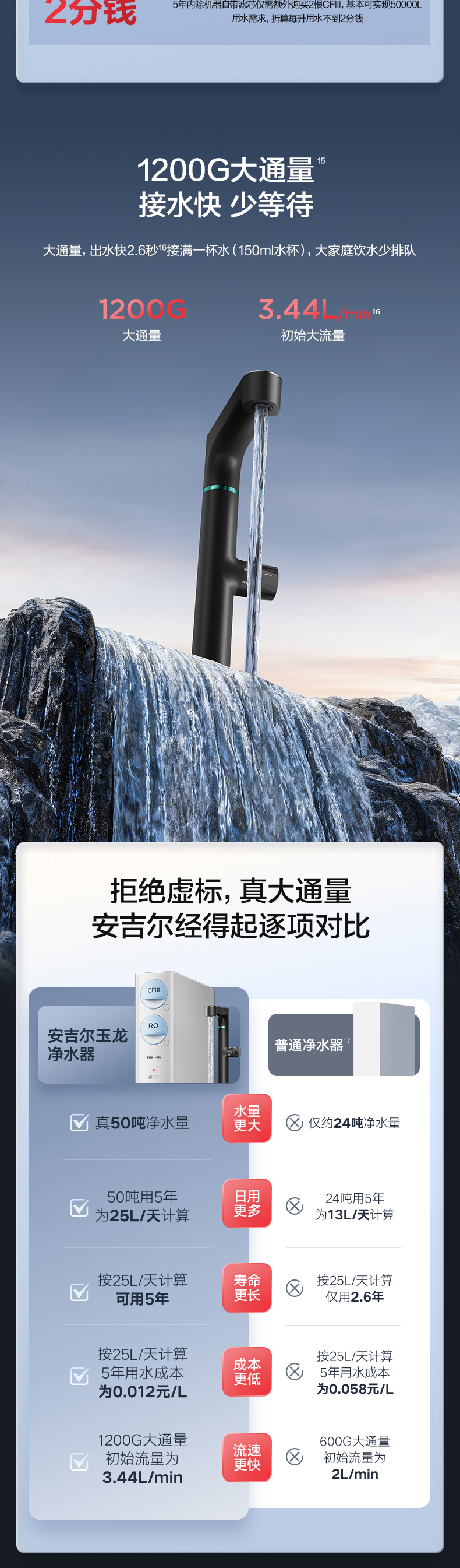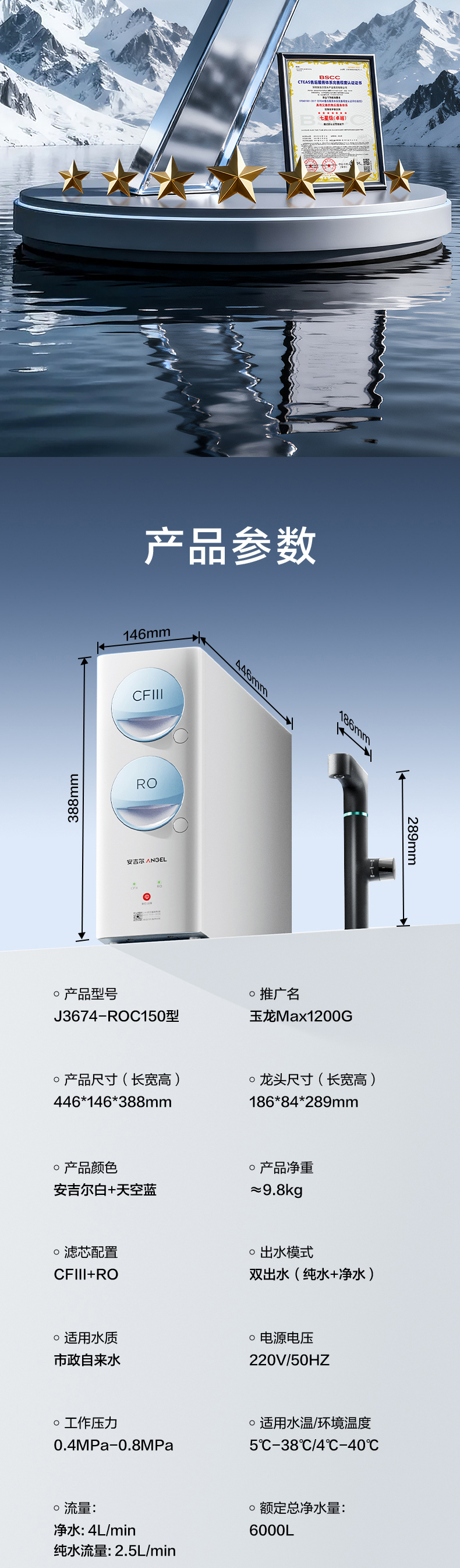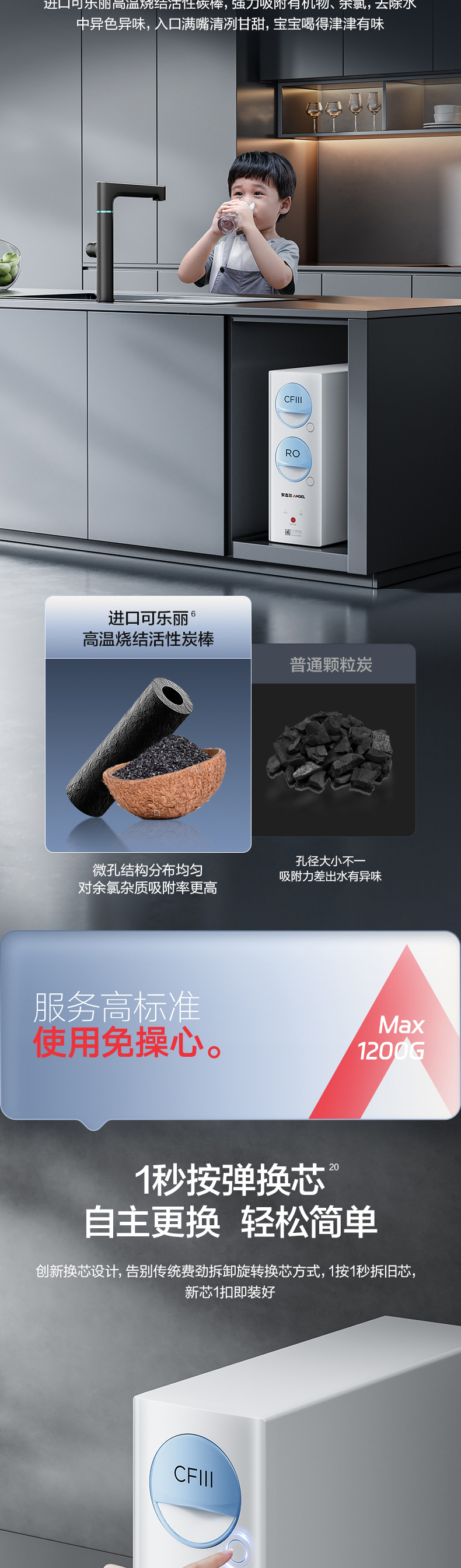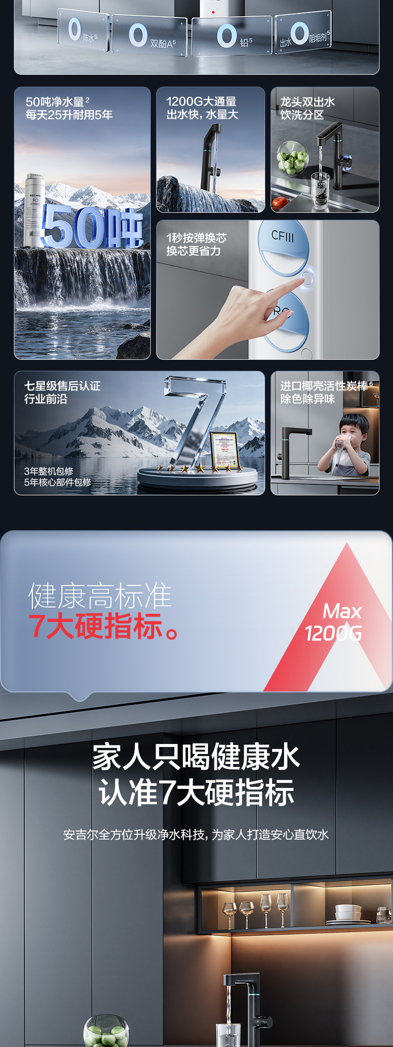 安吉尔玉龙Max1200G家用直饮反渗透净水器