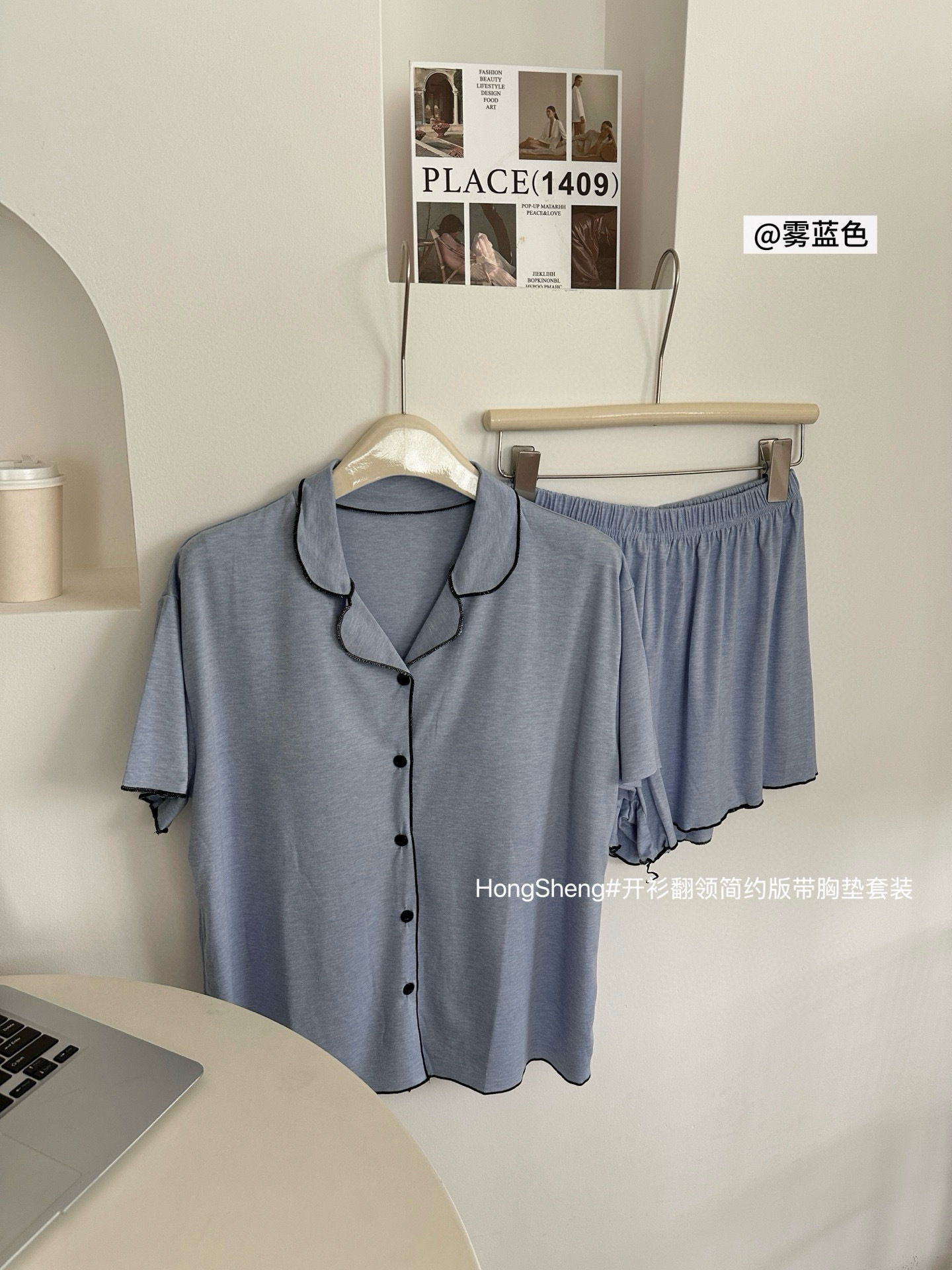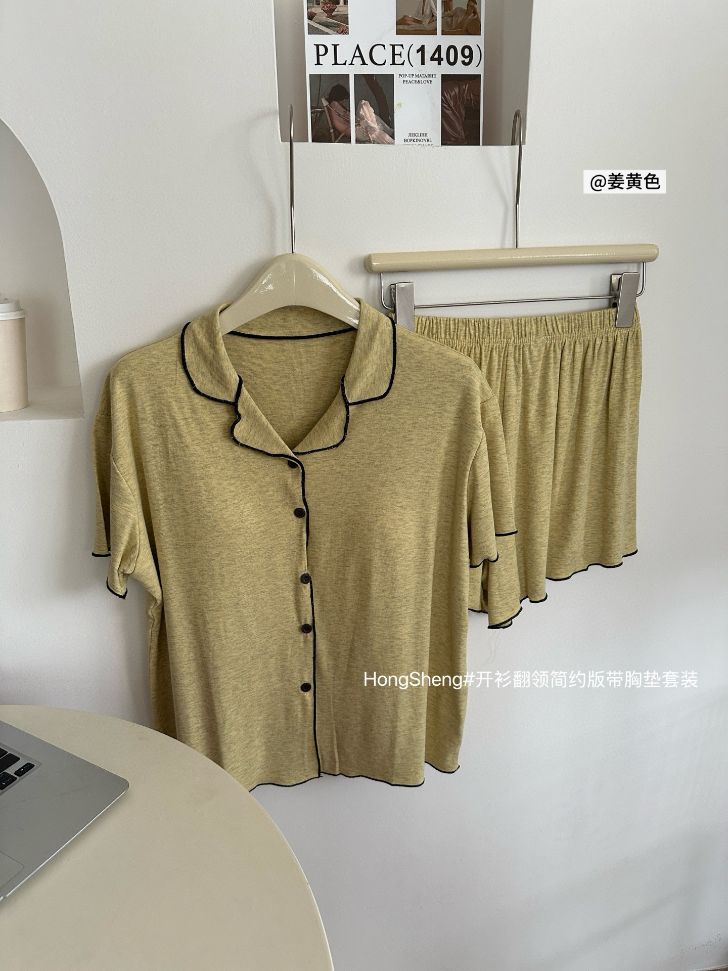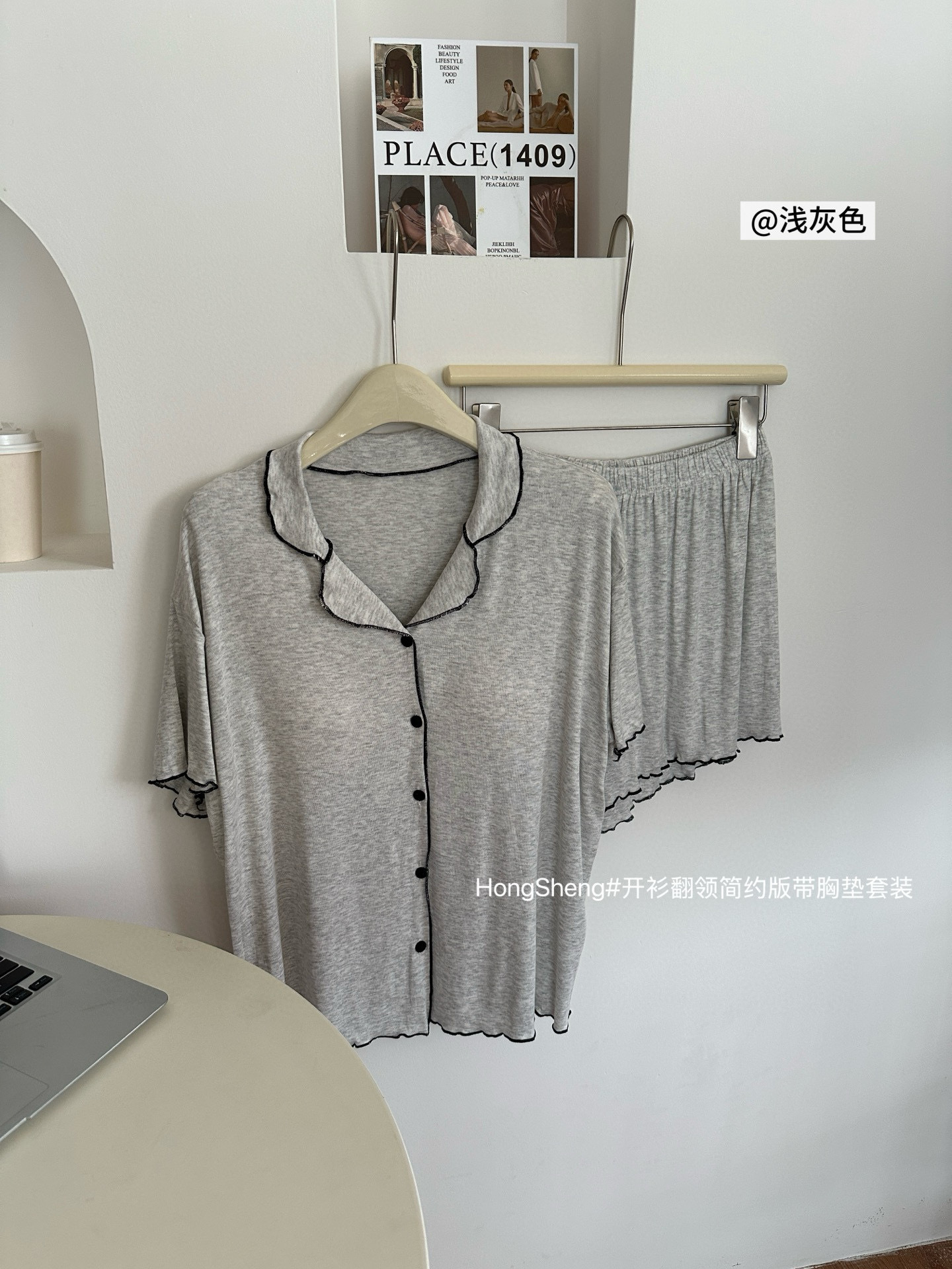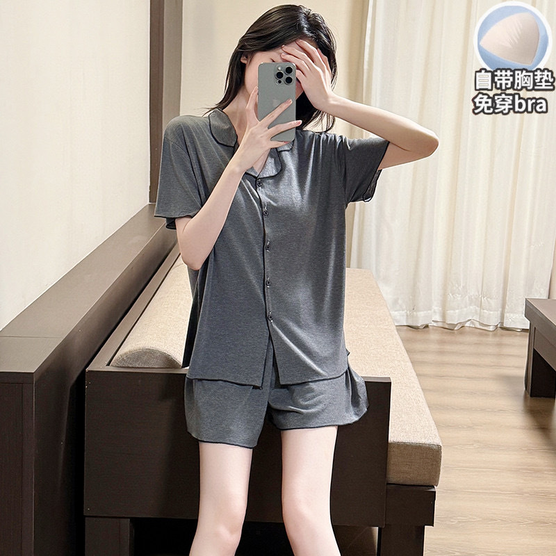 【韩系简约莫代尔睡衣】夏季薄款 带胸垫开衫木耳边短袖短裤 休闲两件套套装