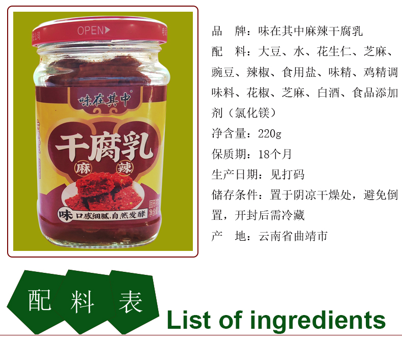 云南宣威市味在其中麻辣干腐乳,多种规格 商品缩略图0 云南宣威市味在其中麻辣干腐乳,多种规格 商品缩略图1 云南宣威市味在其中麻辣干腐乳,多种规格 商品缩略图2