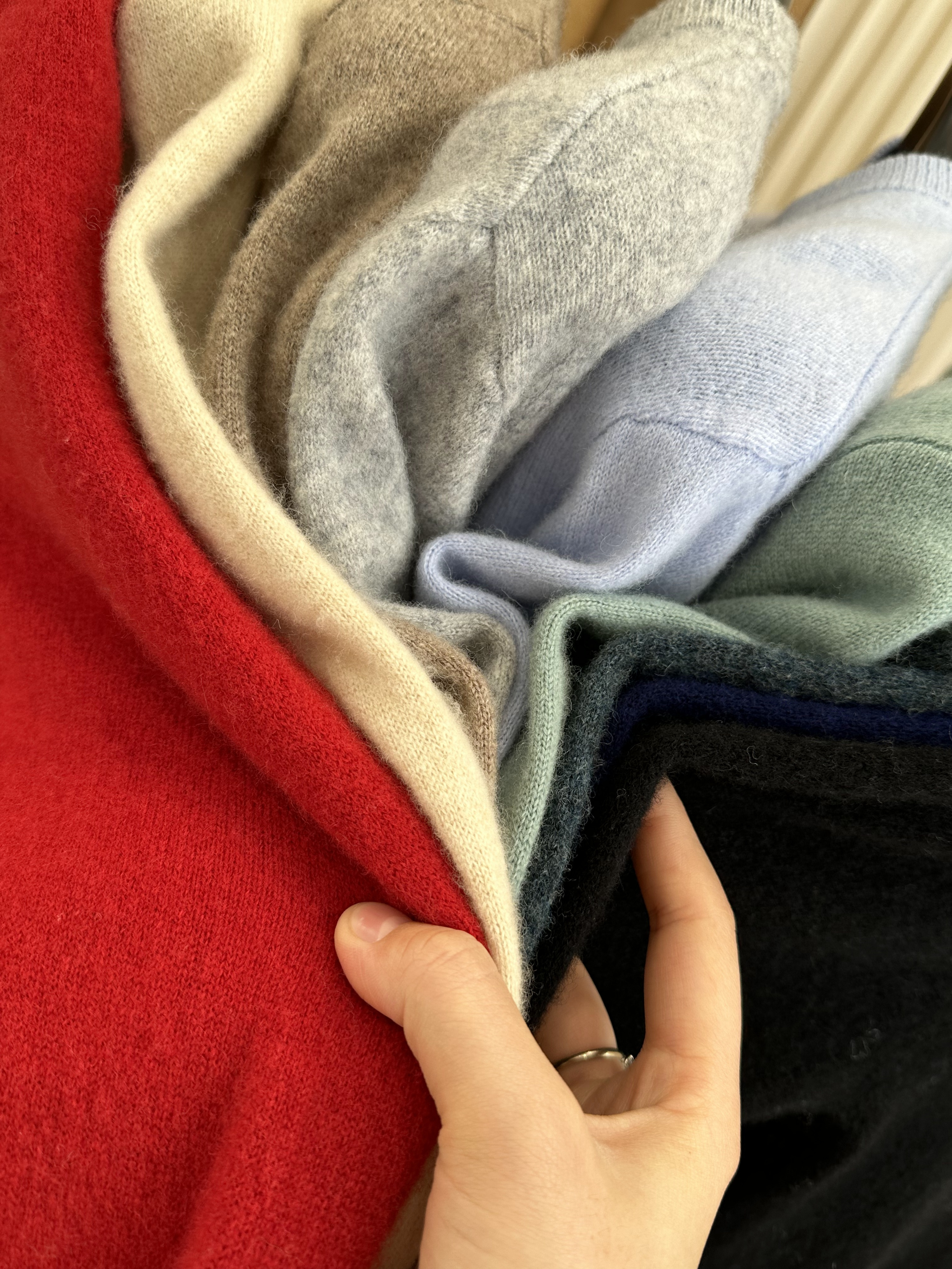 我们收到了好几家工厂的羊绒衫