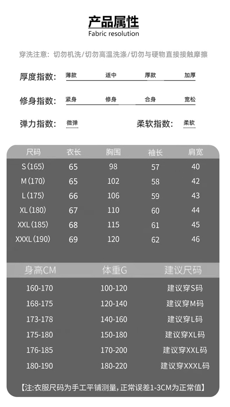 【尺码】S(100-120斤), M(120-140斤), L(140-160斤), XL(150-180斤), 2XL(170-200斤), 3XL(180-220斤)