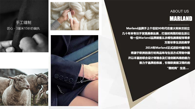 【品牌介绍】Marland品牌于上个世纪90年代在意大利米兰创立几十年来专注于发现美表达美,打造时尚简约轻生活让