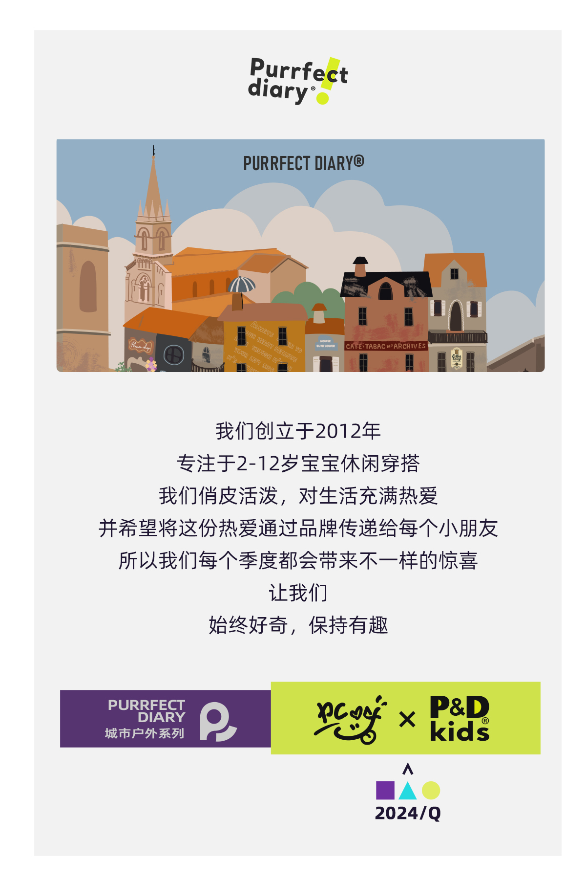 - Purrfect-Diary专注于贴近自然随性的穿着概念,轻奢平价的童装文化传播,在产品设计上更加注重婴童穿着的舒适性、安全性、更出众的国际化品牌,将欧美的育婴文化在中国进行深入的传播与推广。