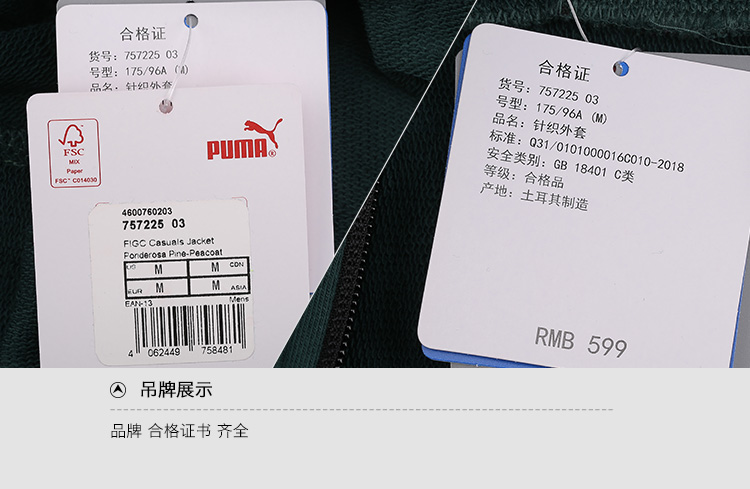 小李子:专柜正品 PUMA/彪马意大利秋冬男子运动休闲夹克外套