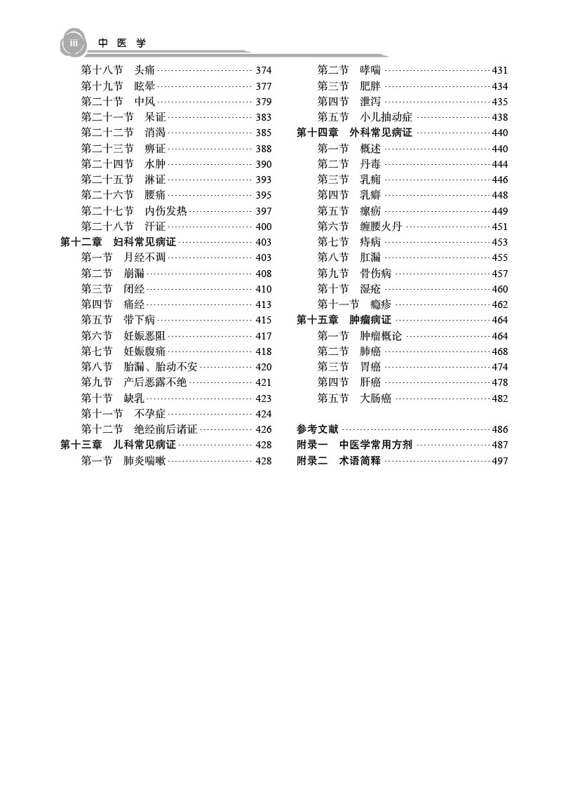 本教材涵盖了中医基础理论、中医诊断学、中药学、方剂学、中医内科学、中医妇科学、中医外科学、中医儿科学等内容。在编写本教材过程中,吸收了其他《中医学》教材的成功经验,结合中医学最新进展和成果,尽量做到条理清晰、框架合理,内容全面,便于教学,注重理论与实践相结合。充分考虑到西医院校学生与中医院校学生知识结构的区别,精心设计教材内容,注重中西医的相互联系及融会贯通,使学生临床诊治疾病的思维更加开阔,知识结构更加严谨。本教材侧重基本技能的训练和培养,启发学生独立思考,提高学生应用中医学及中西医结合医学的知识水平和处理临床实际问题的能力。同时,为了便于《中医学》的教学和学习,我们还配套编写了《中医学》数字教材。