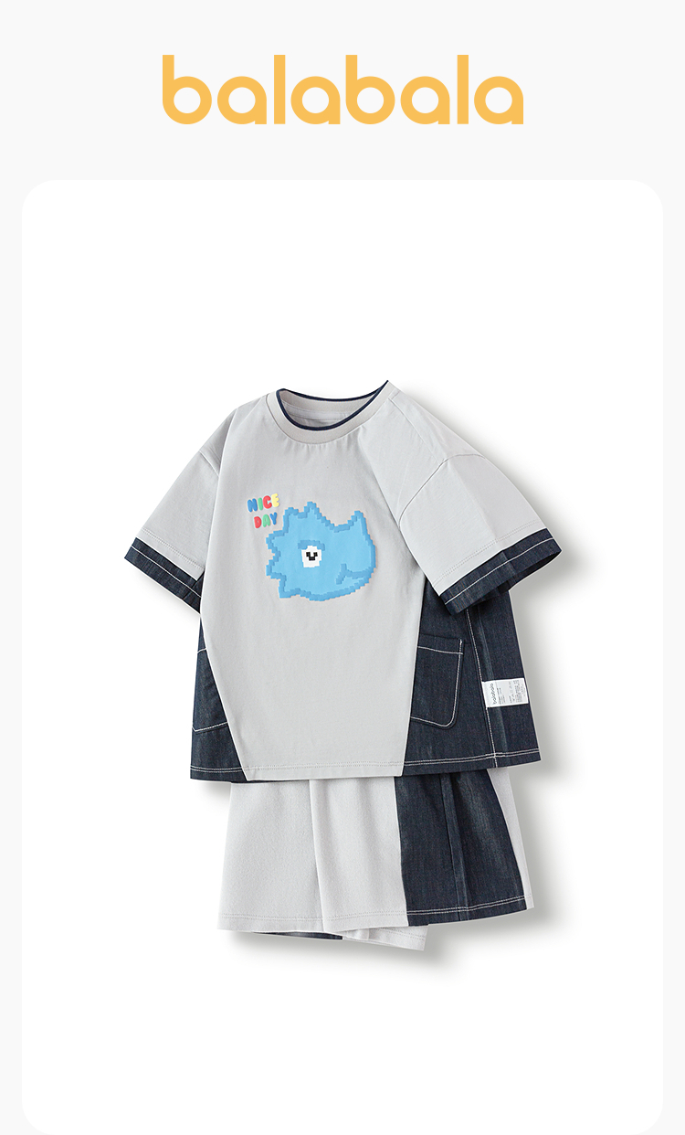 巴拉巴拉童装儿童短袖套装男童两件套拼色2025夏新款