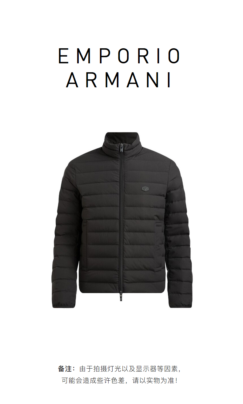 ARMANI 阿玛尼 男士LOGO徽标贴花商务休闲羽绒服 黑色 8N1BQ2 1NLRZ 0999