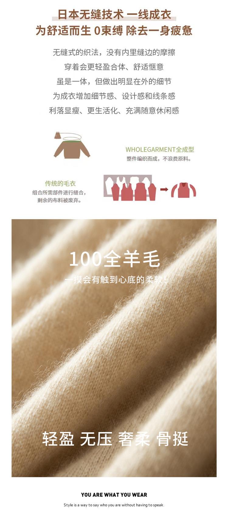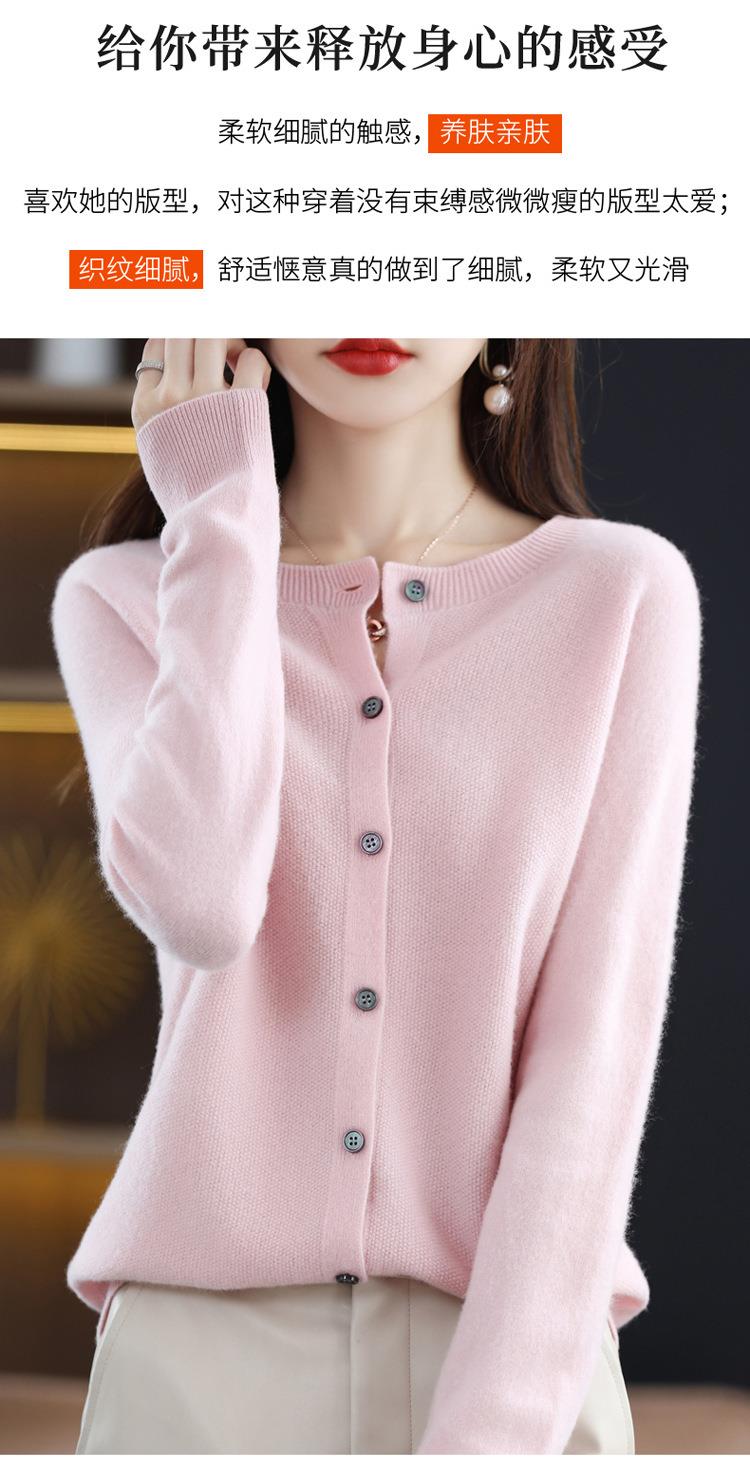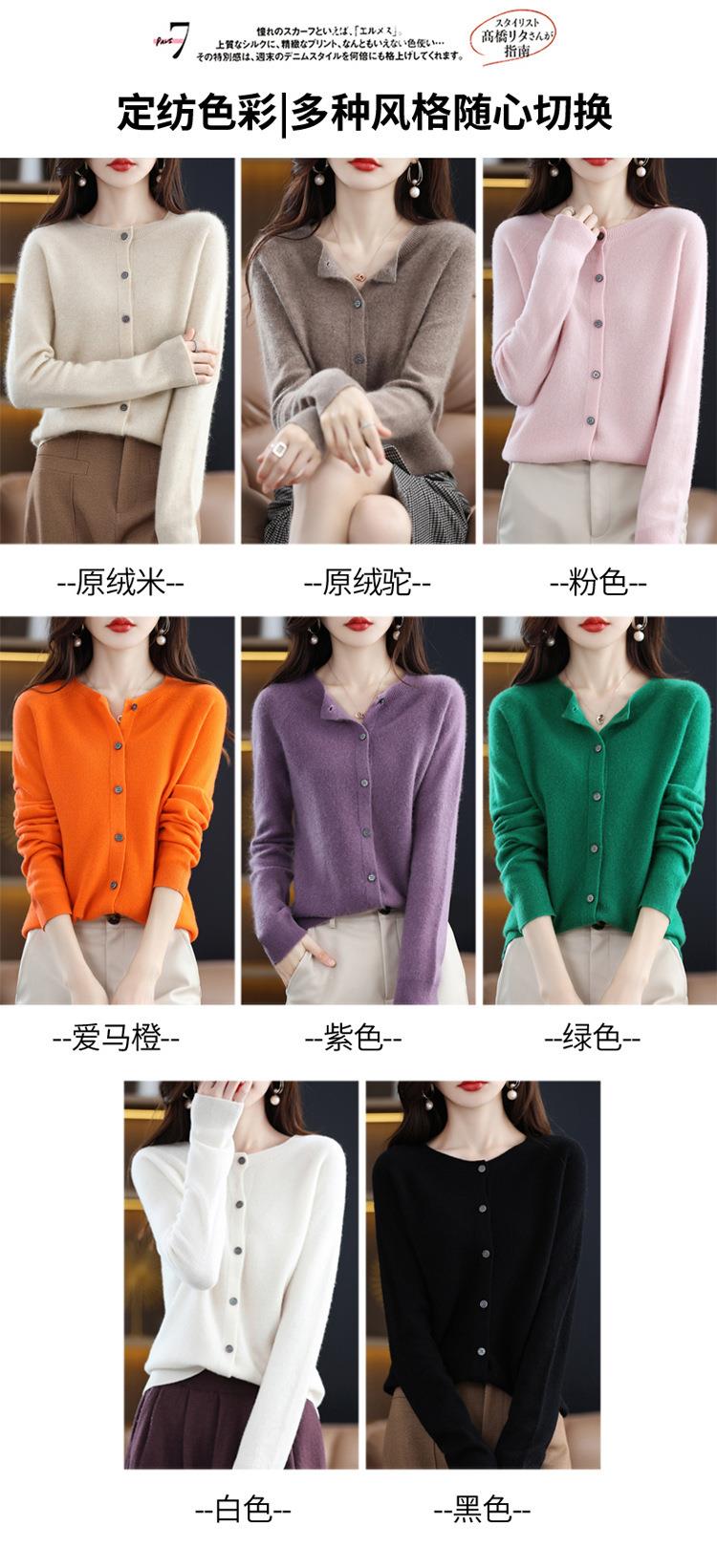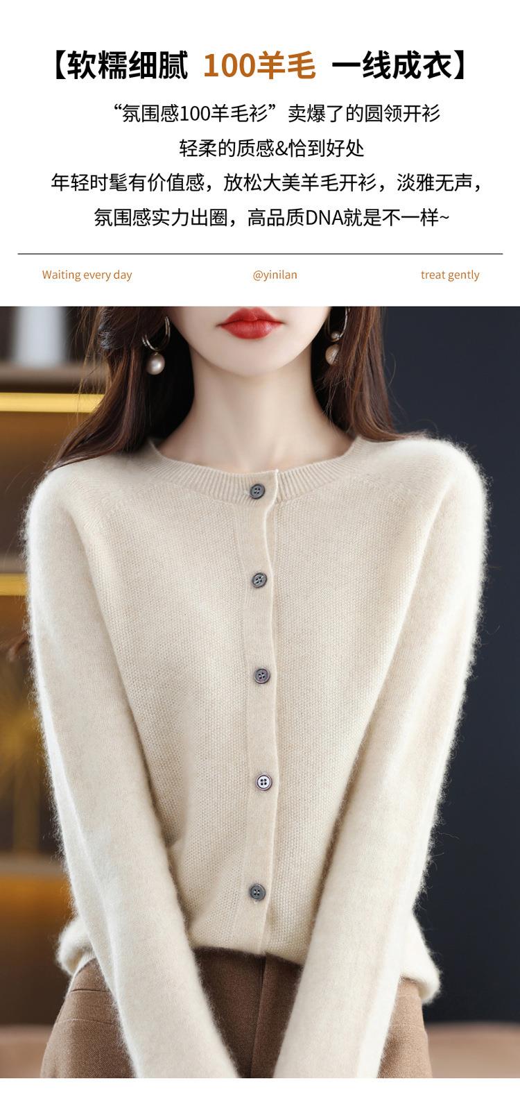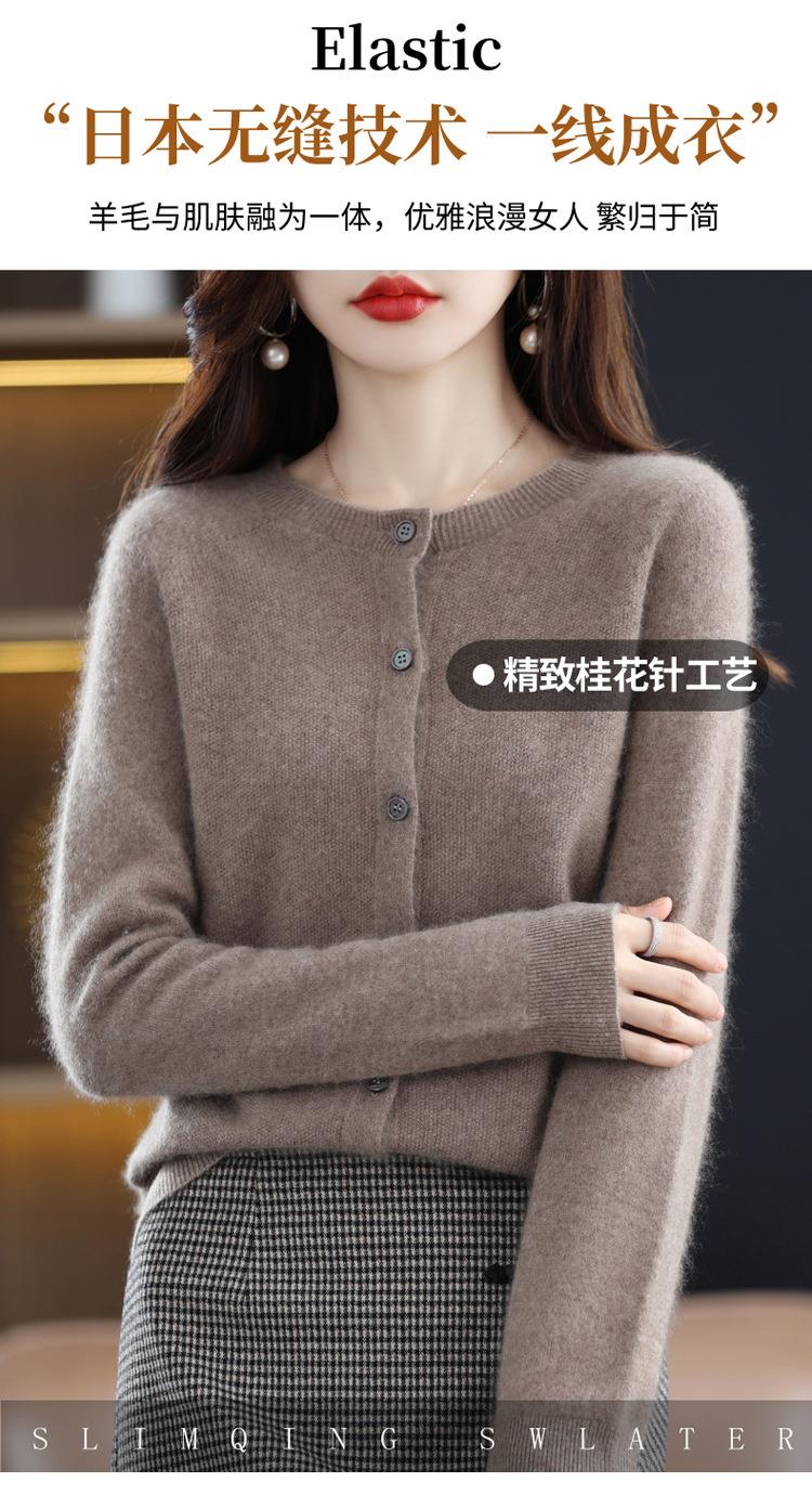 2023秋季新款圆领一线成衣羊毛开衫女宽松无缝羊毛针织外套女毛衣