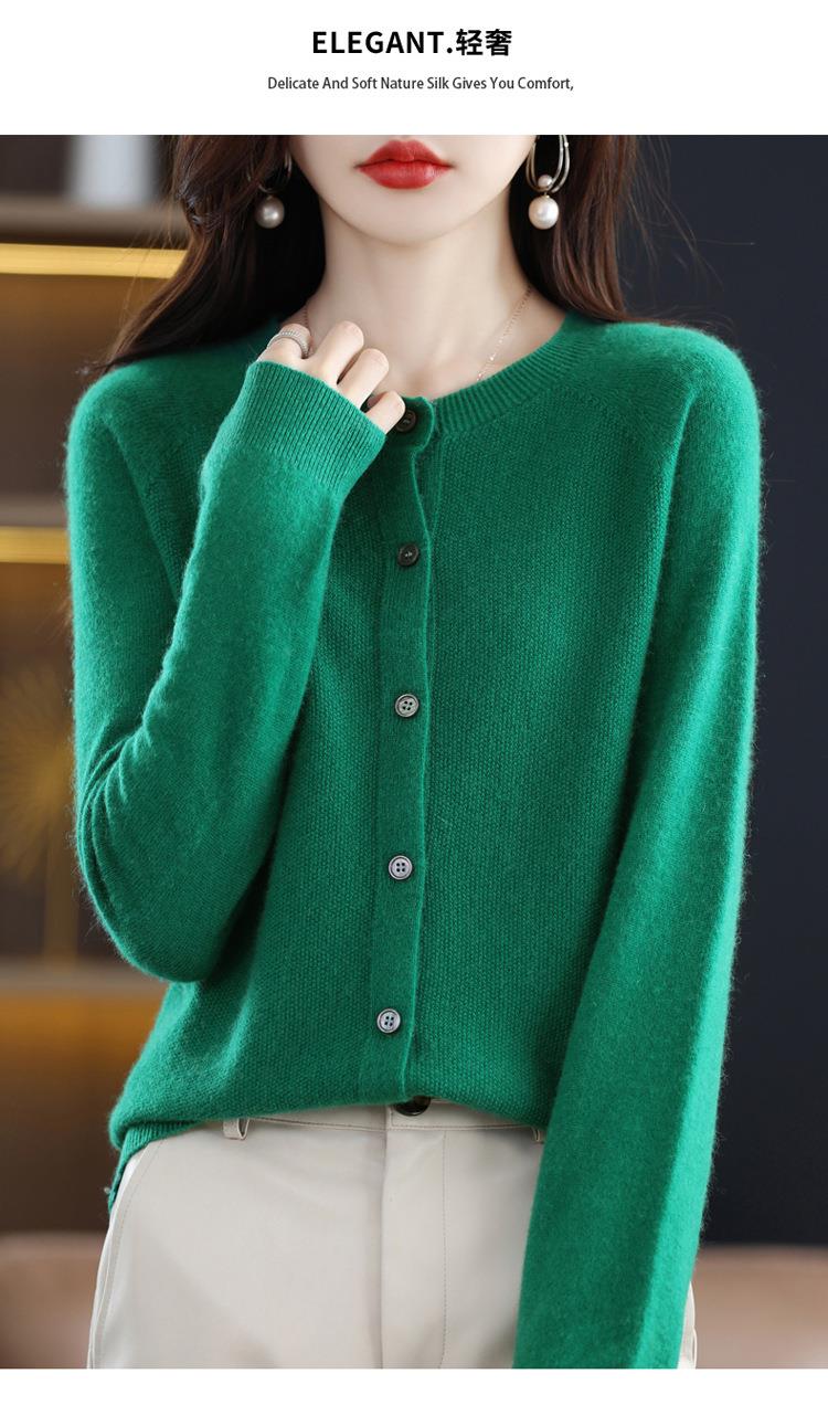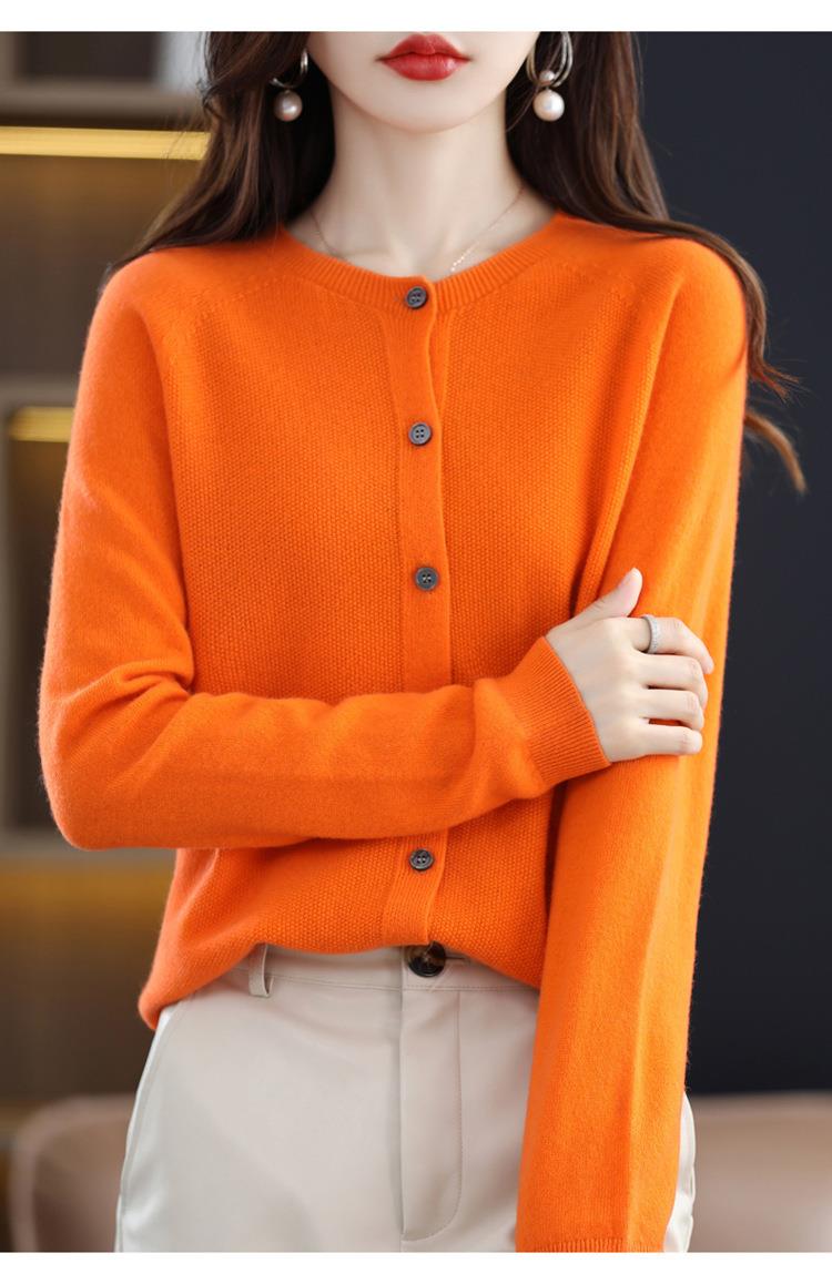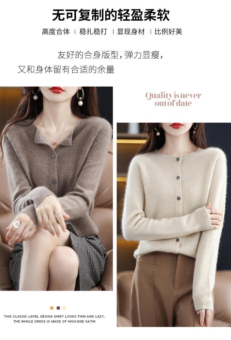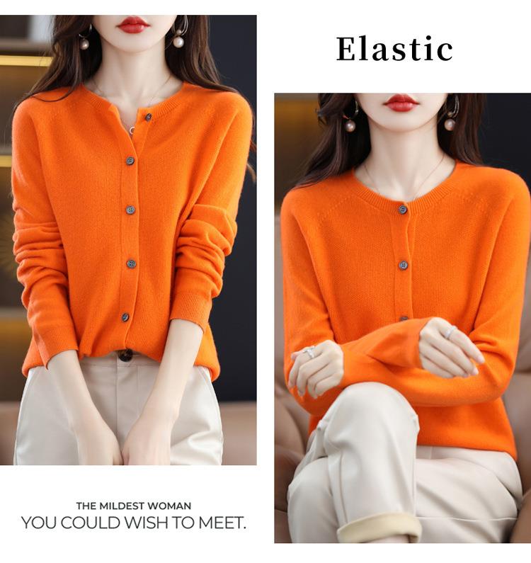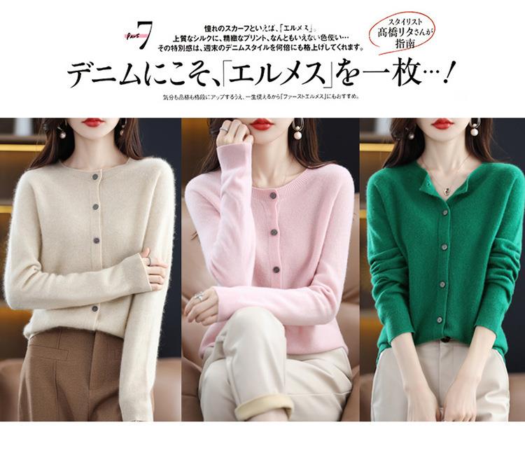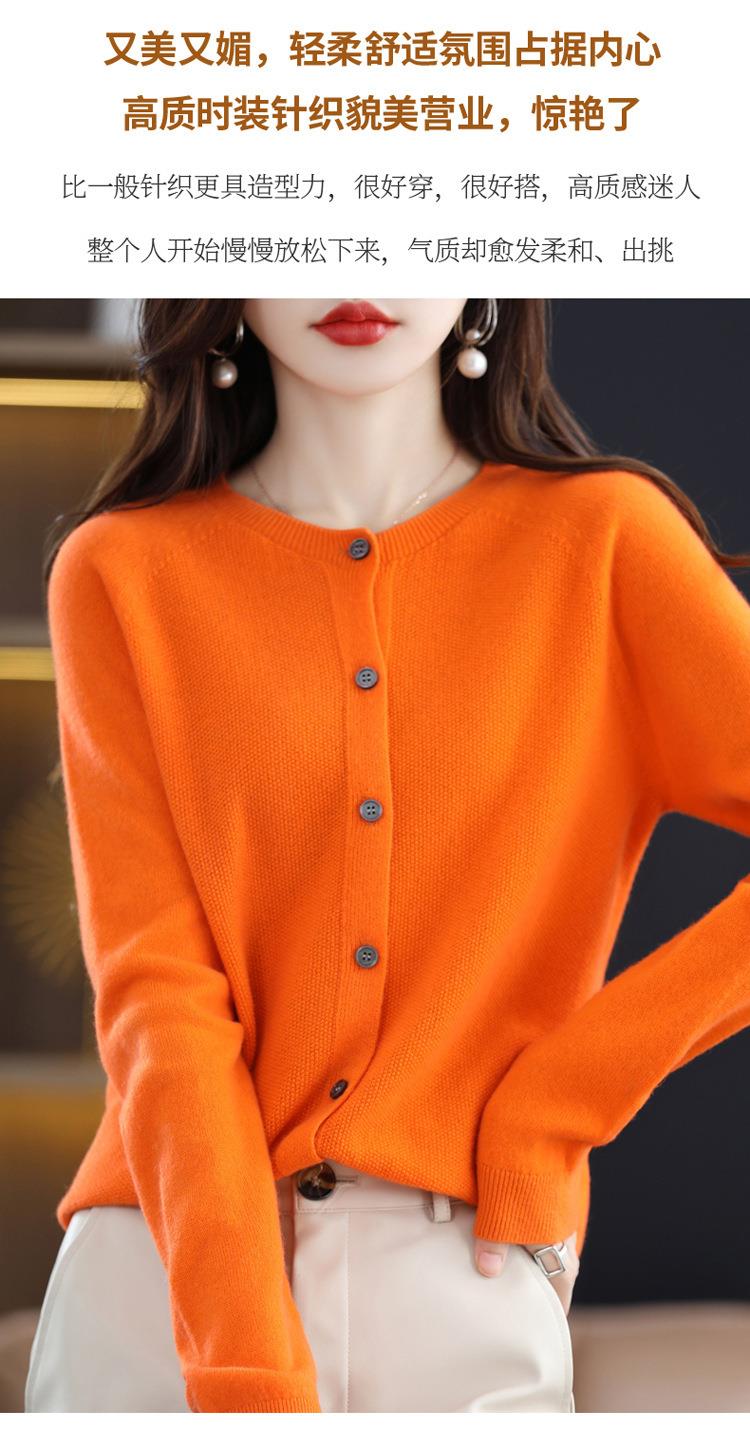 2023秋季新款圆领一线成衣羊毛开衫女宽松无缝羊毛针织外套女毛衣