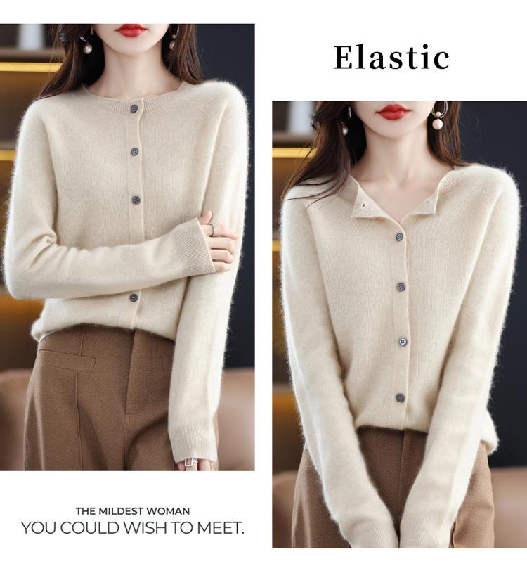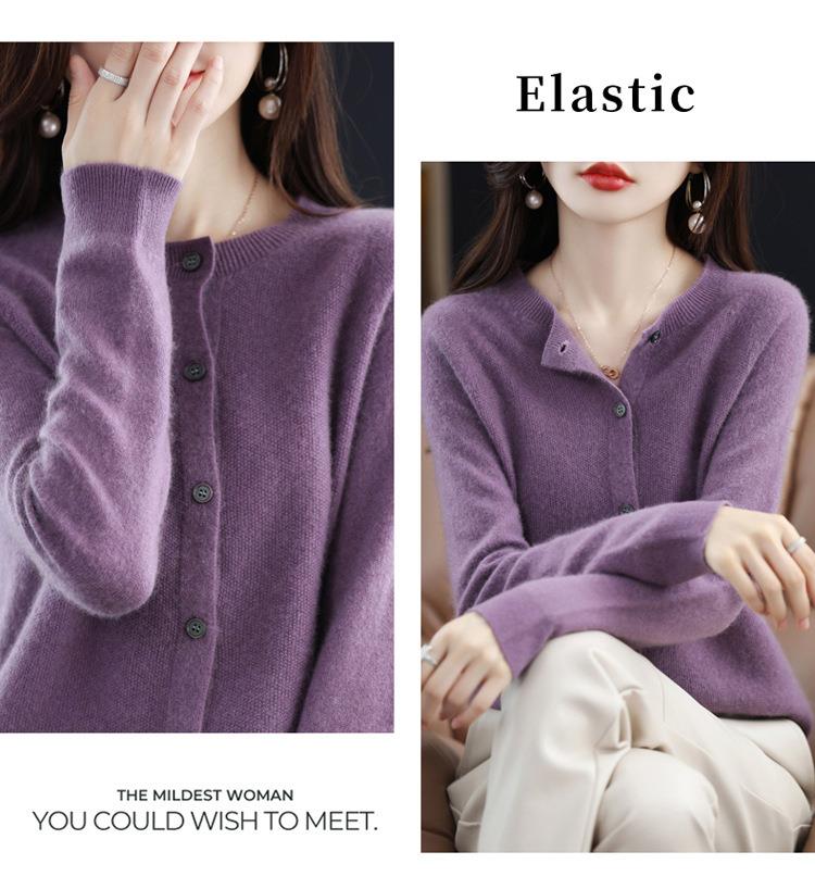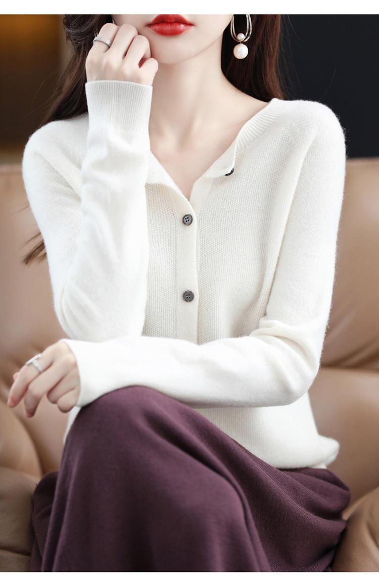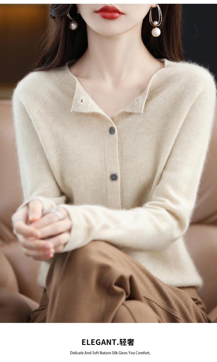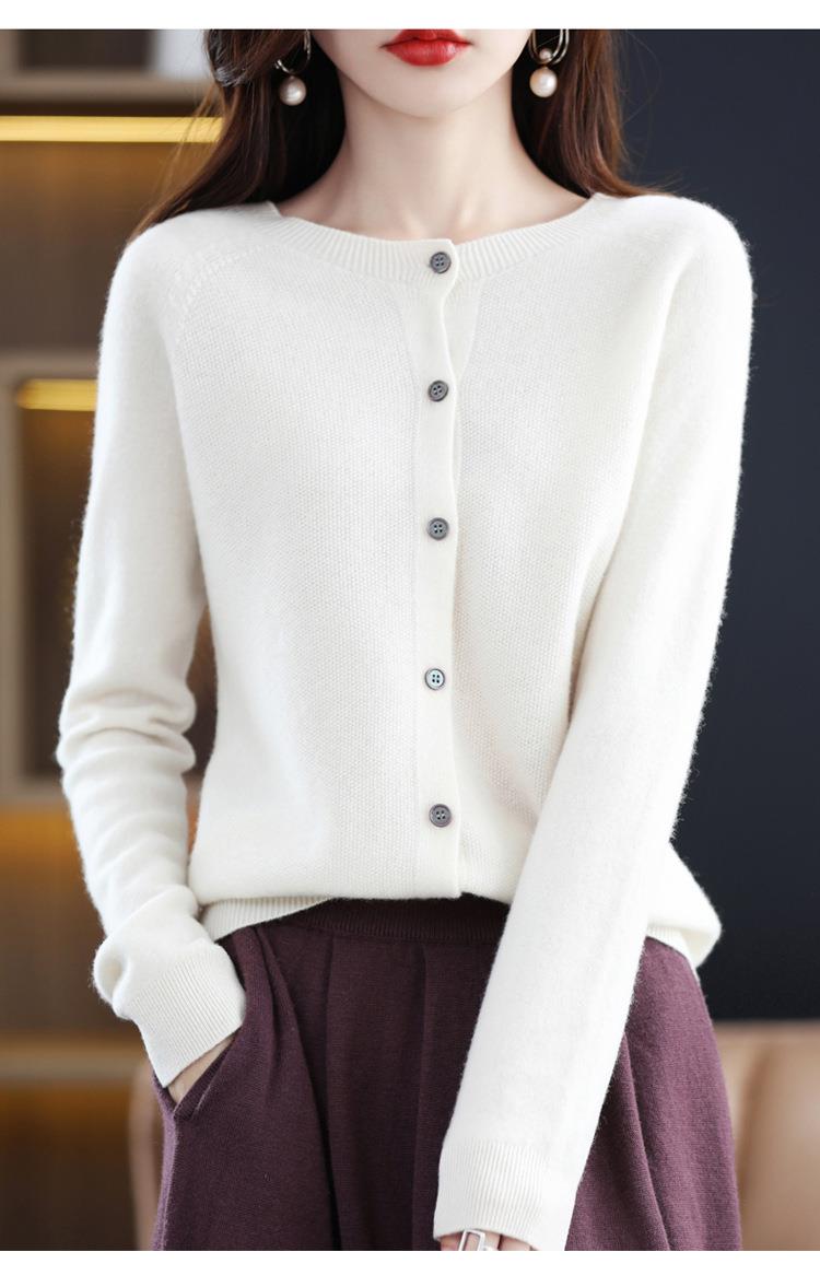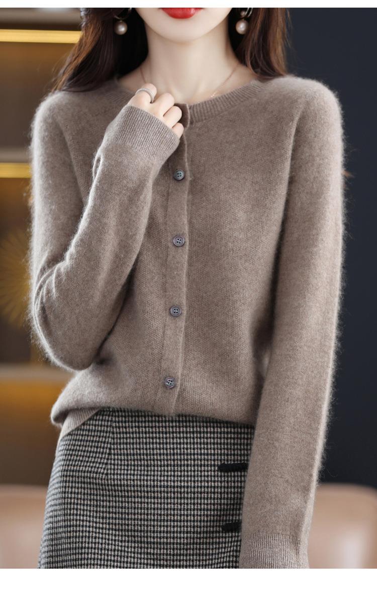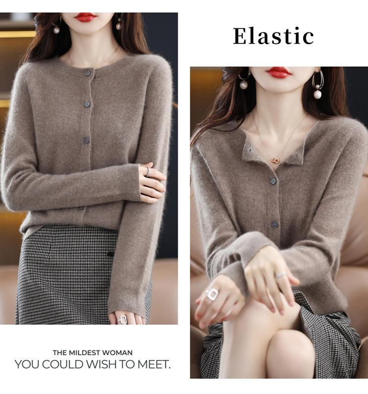 2023秋季新款圆领一线成衣羊毛开衫女宽松无缝羊毛针织外套女毛衣