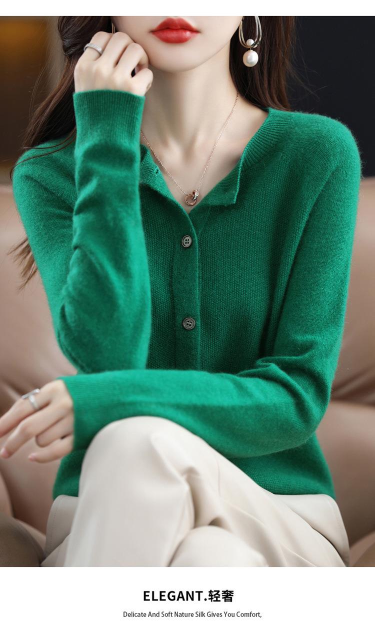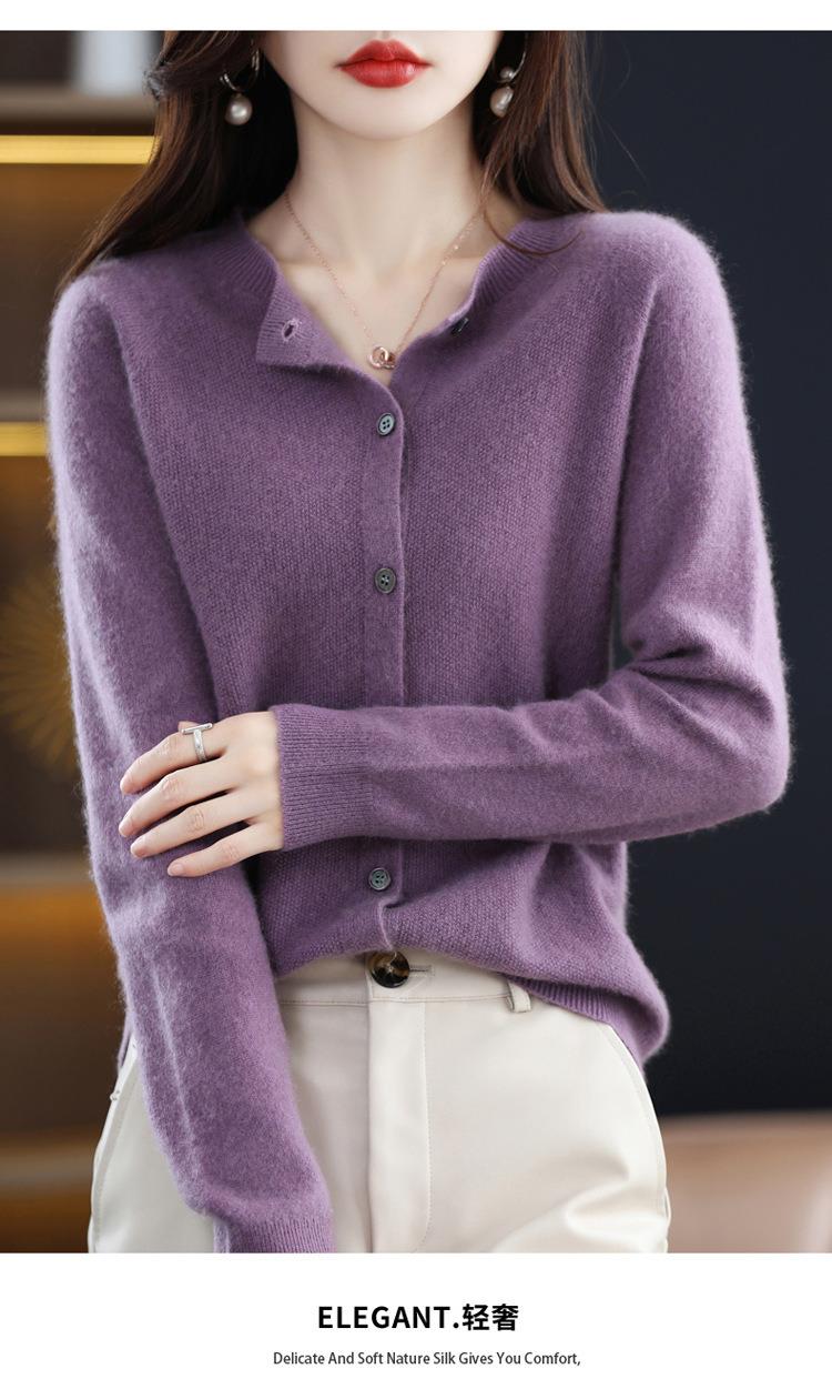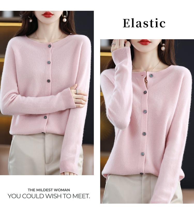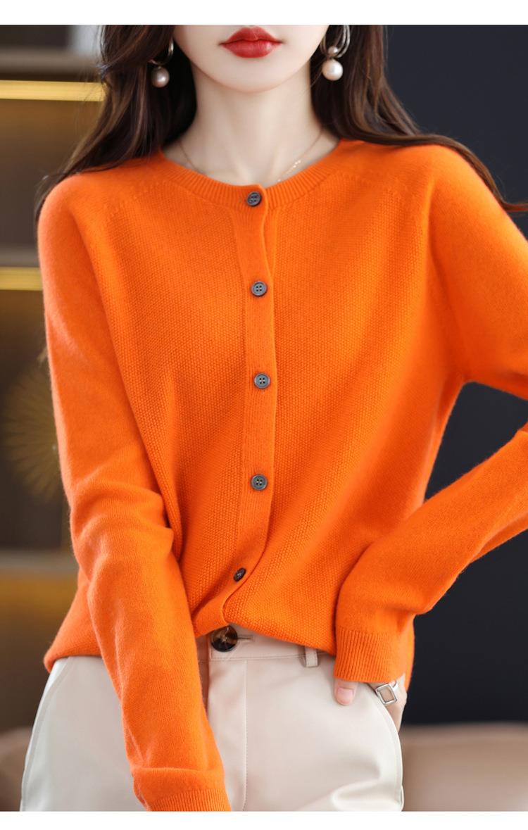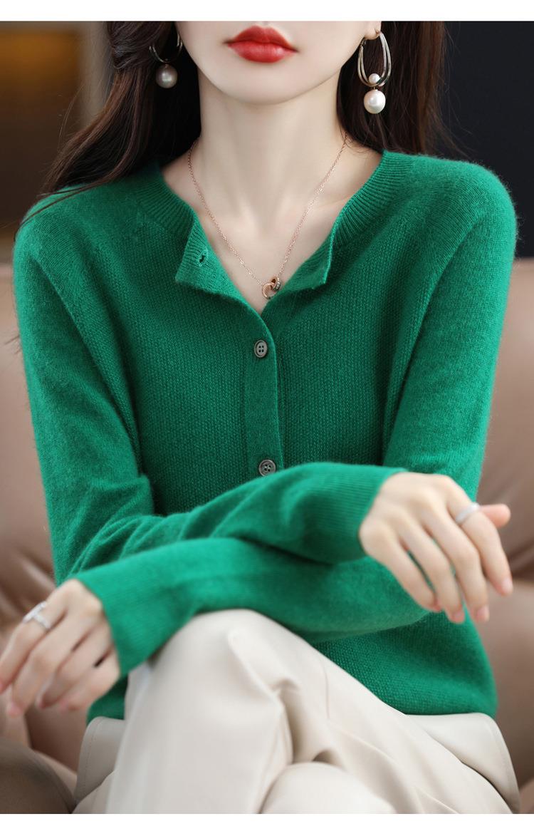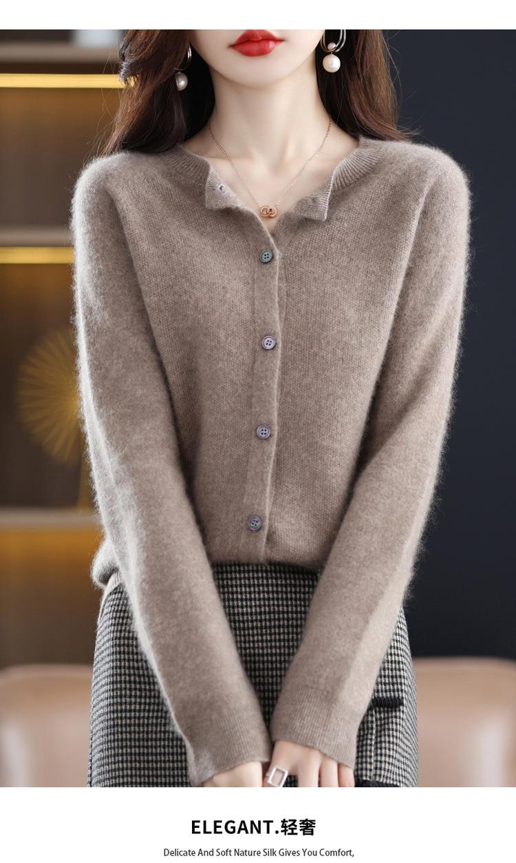 2023秋季新款圆领一线成衣羊毛开衫女宽松无缝羊毛针织外套女毛衣