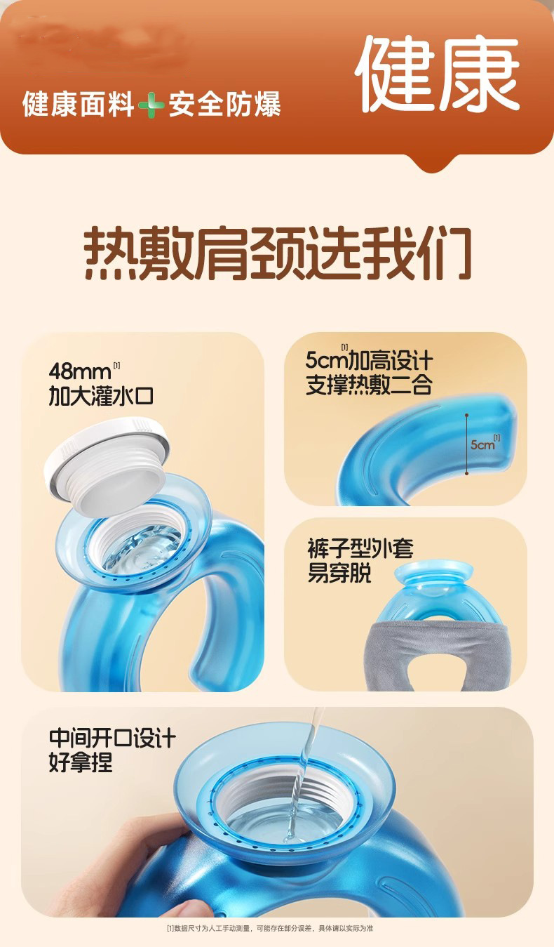 冬日取暖神器【U型环颈热敷!赶走肩颈不适】颈椎专用热水袋注水灌水暖水袋热敷脖子肩膀肩颈头部围脖U型枕头。rc