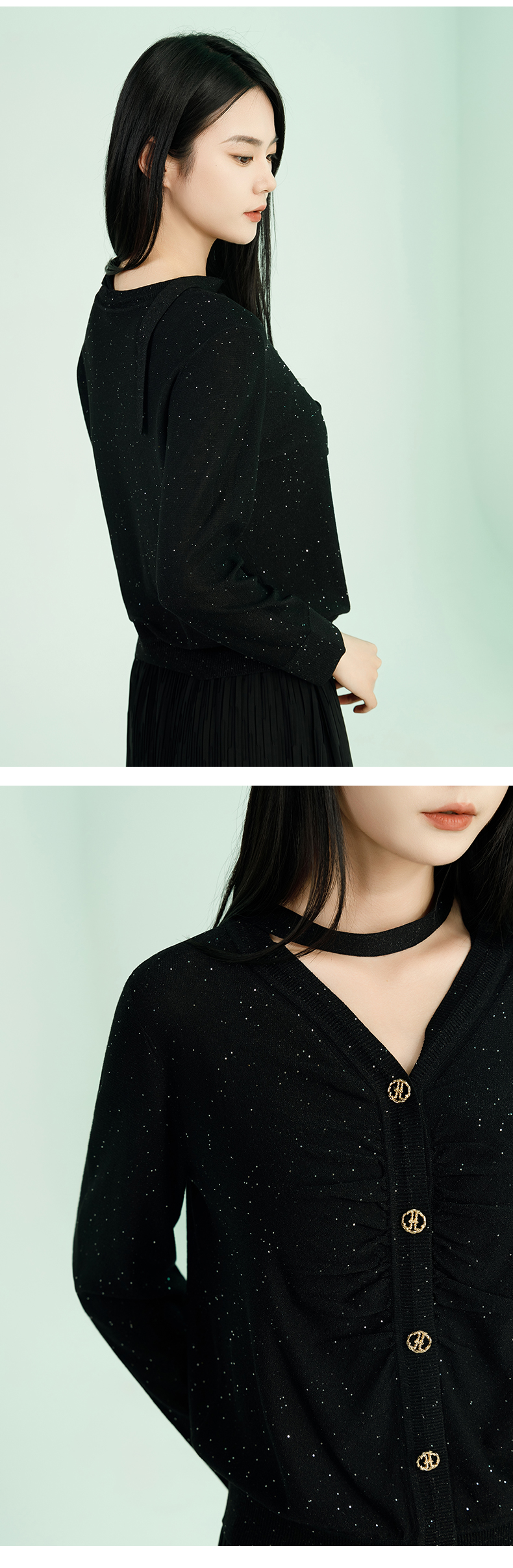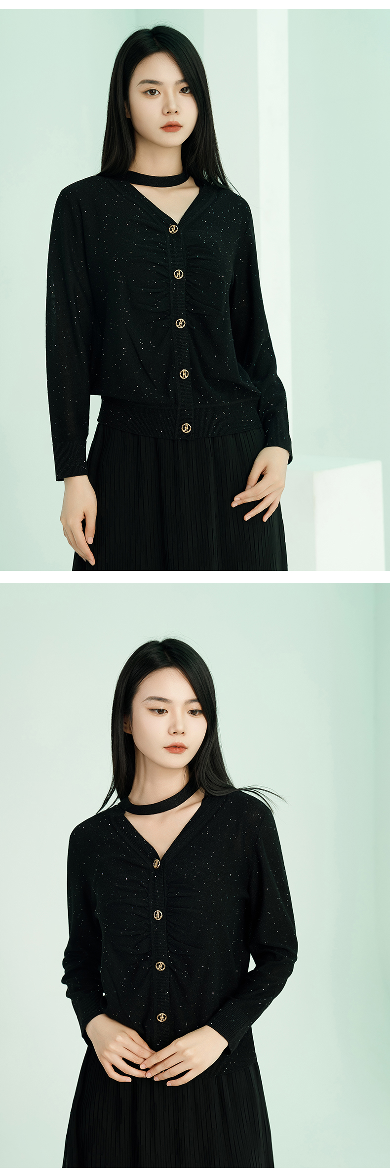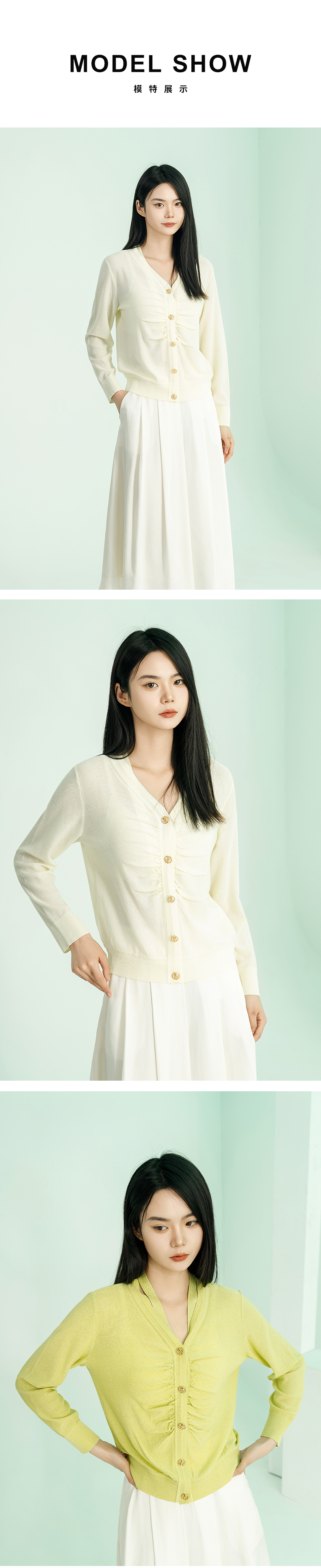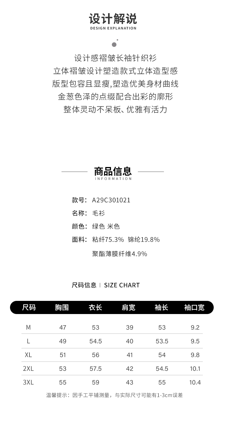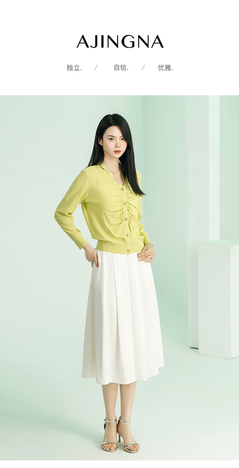 【商场同款】阿菁娜2024春季新款设计感褶皱长袖针织衫A29C301021