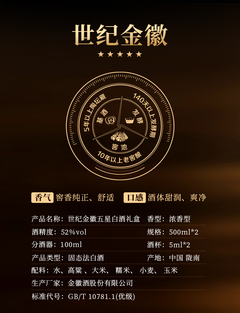 金徽酒 52度世纪流金五星礼盒