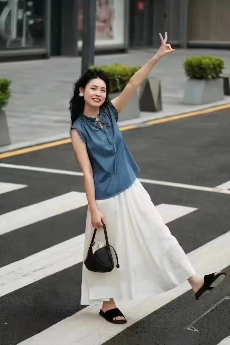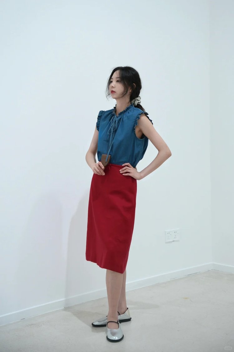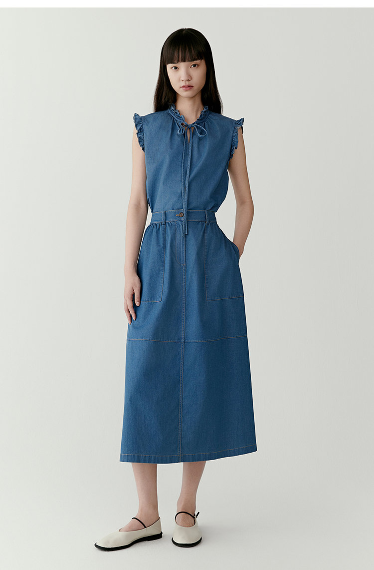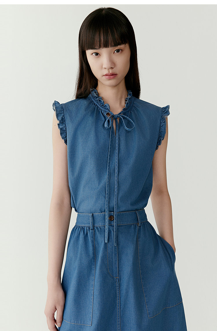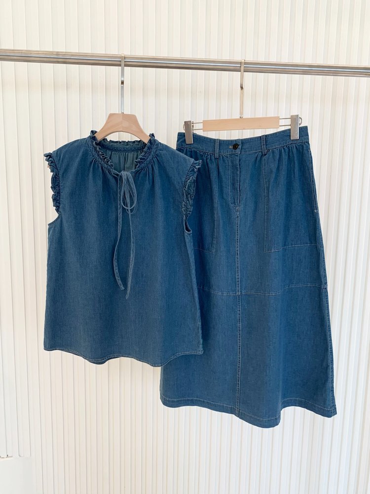 【高品质私服】【IC棉弹牛仔布无袖上衣+半裙】优质原料 弹性优异 舒适自如,优雅又独特的时尚风格G1439/G1454-CC【无标出货 介意慎拍】