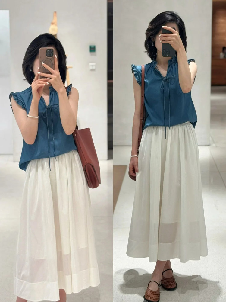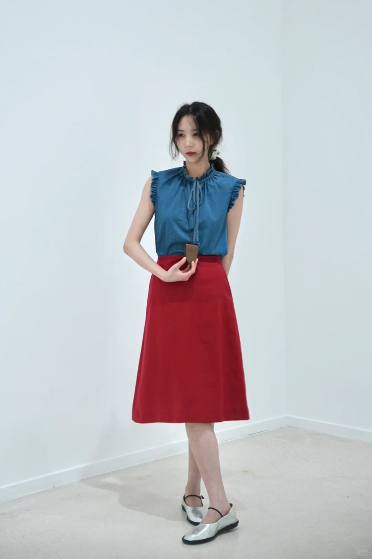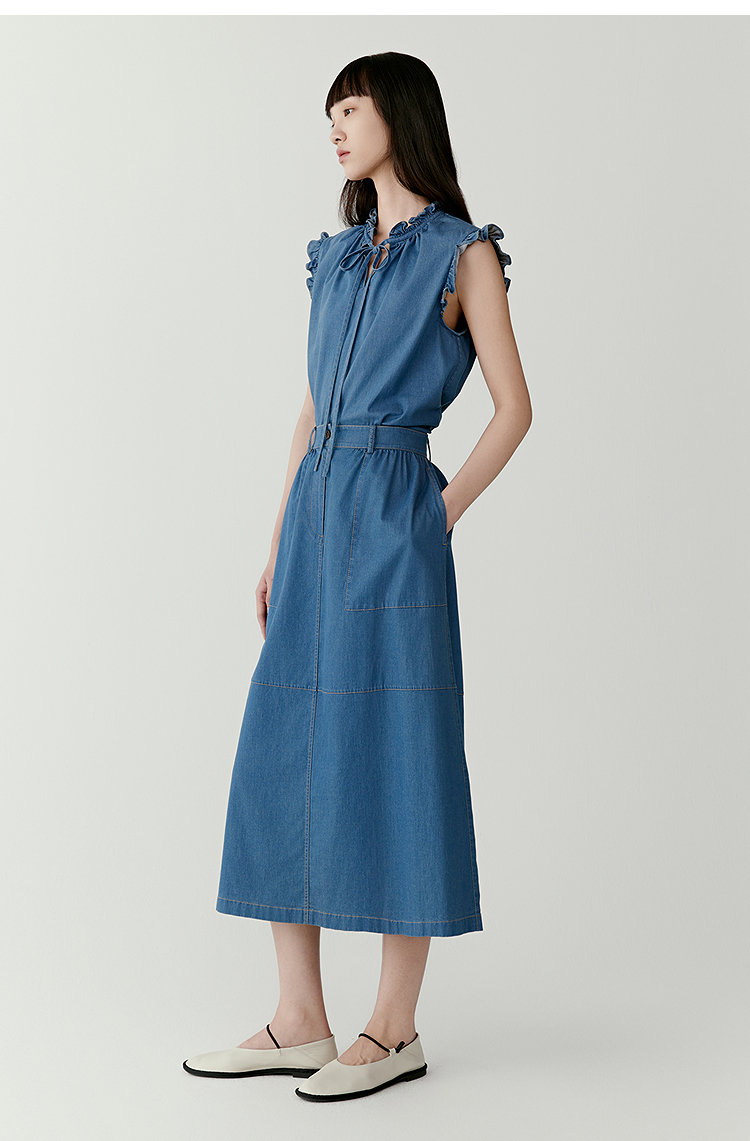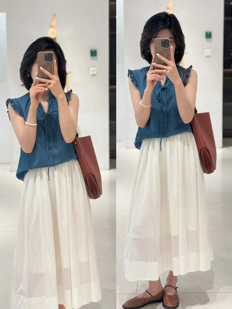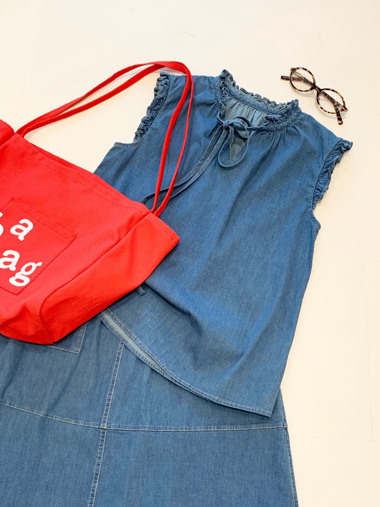 【高品质私服】【IC棉弹牛仔布无袖上衣+半裙】优质原料 弹性优异 舒适自如,优雅又独特的时尚风格G1439/G1454-CC【无标出货 介意慎拍】