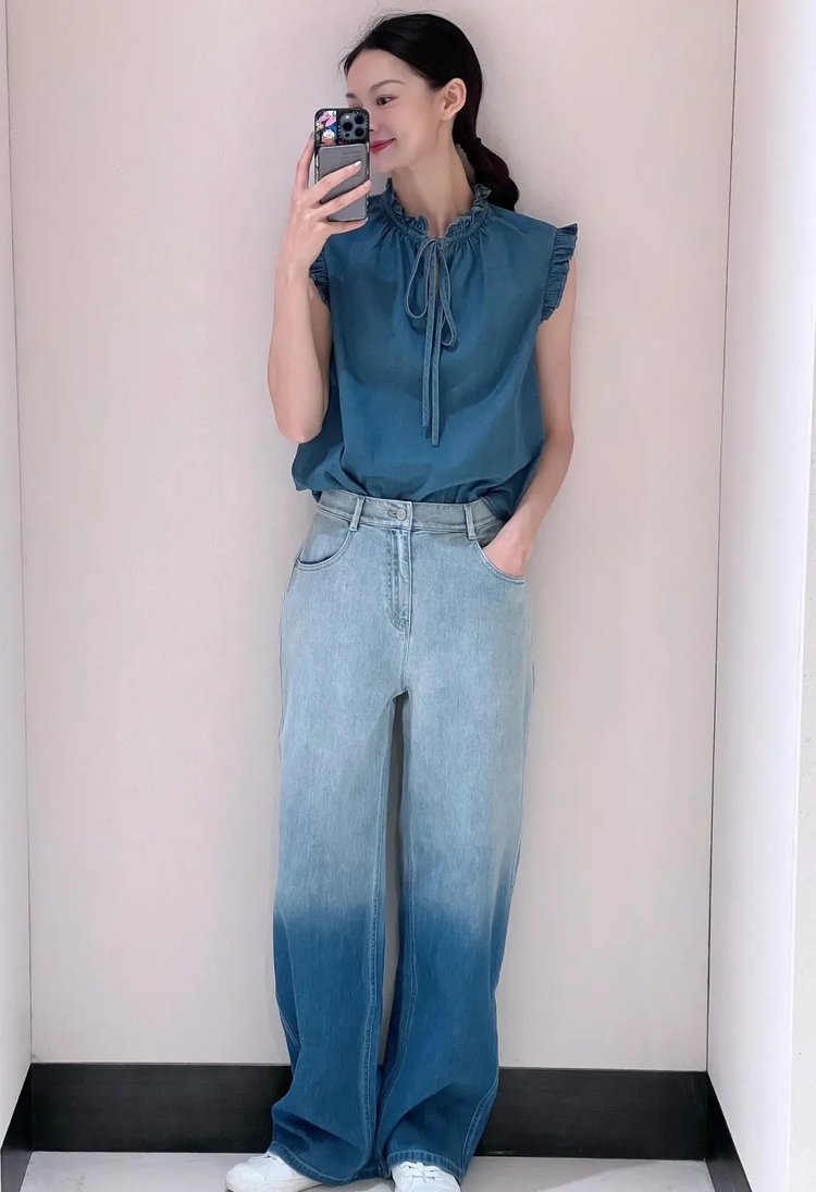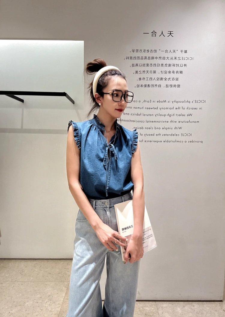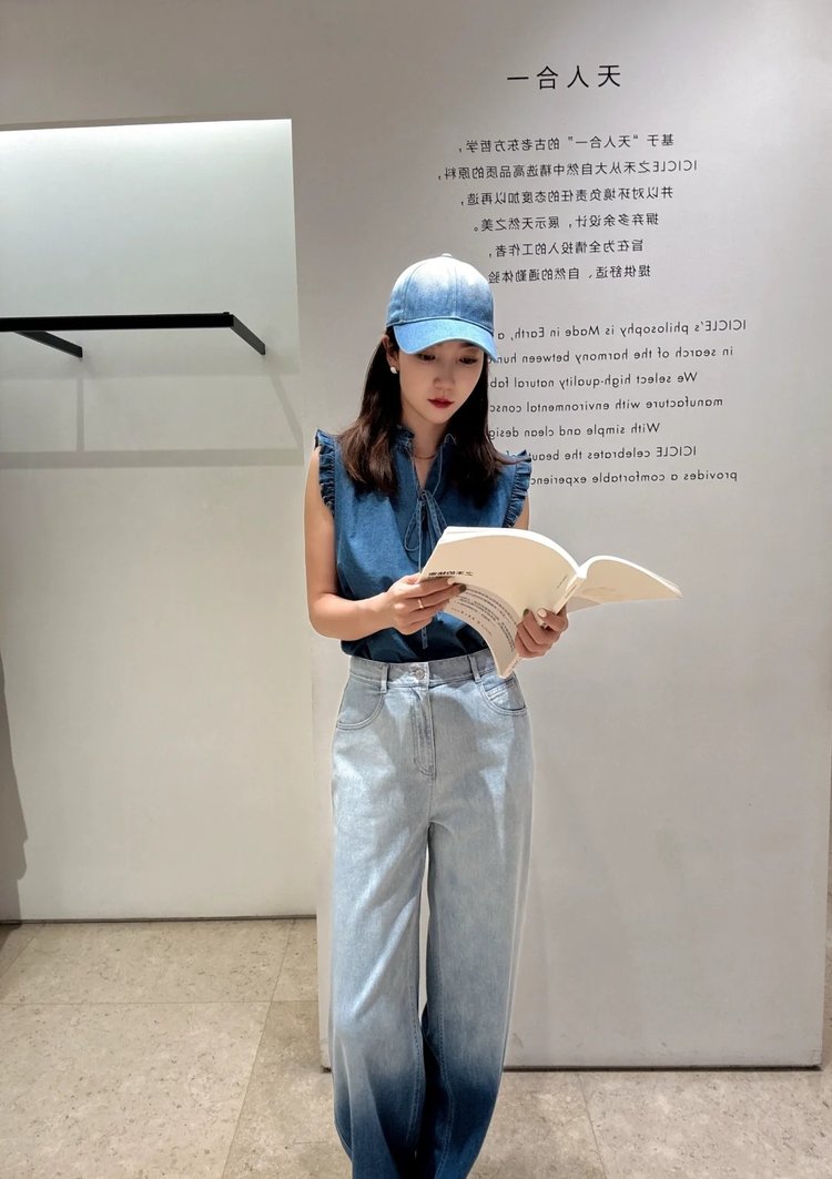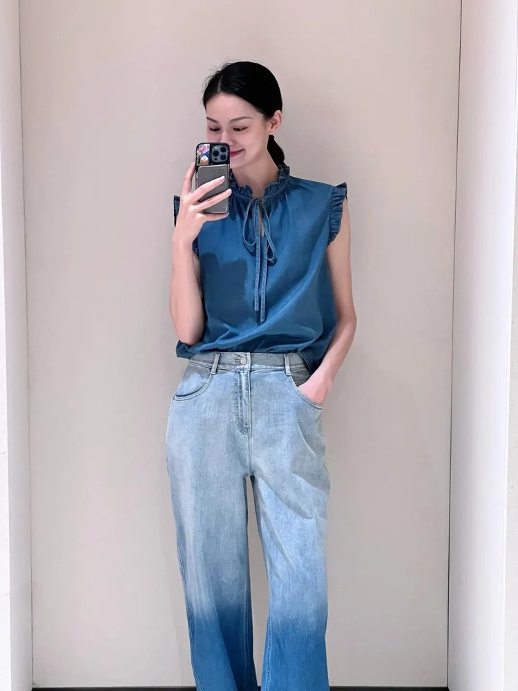 巧妙地将女性化的元素与中性感的牛仔料相结合