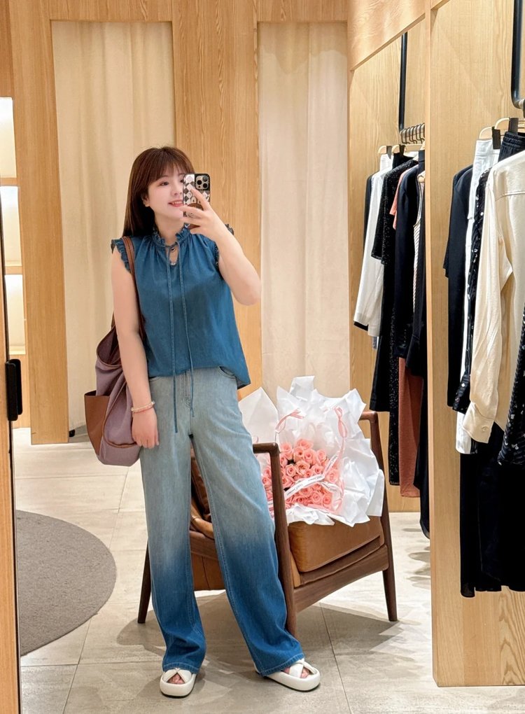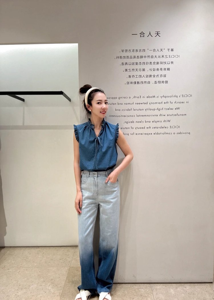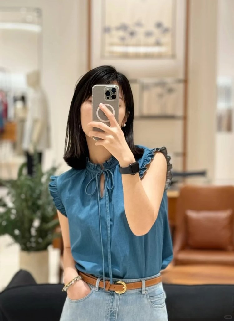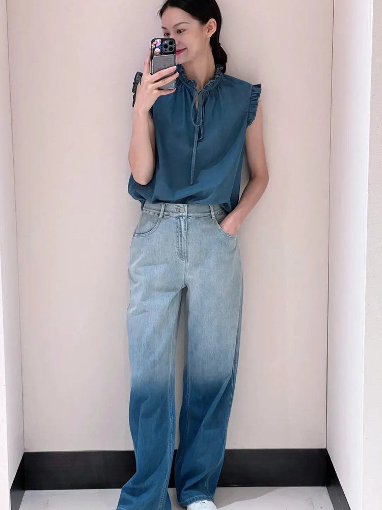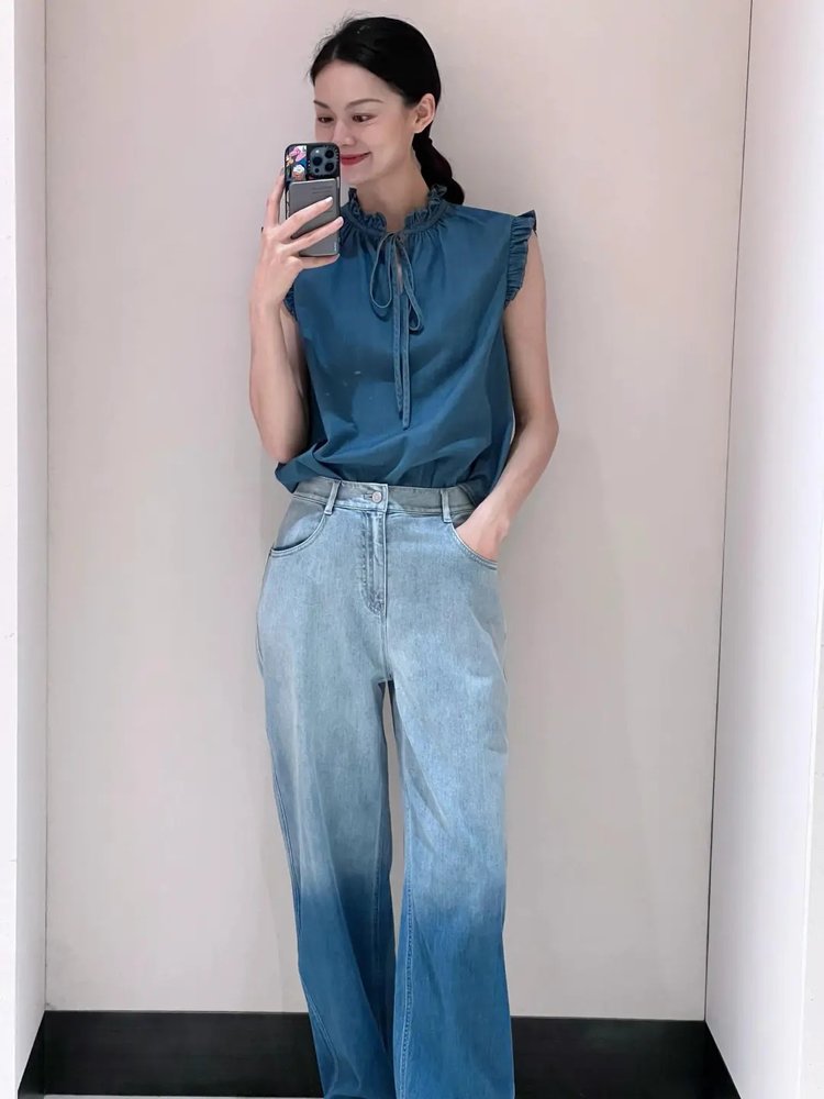 巧妙地将女性化的元素与中性感的牛仔料相结合