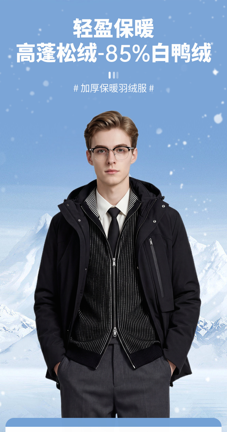 【鸭绒】圣得西2025年冬季羽绒服青年男款户外休闲保暖连帽外套