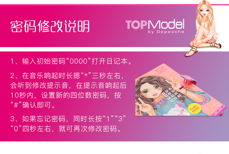 TOPMODEL TOPModel密码日记本(可爱粉)TOPC0410297