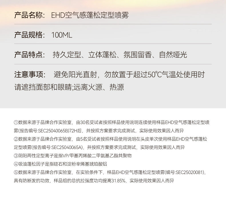 【买就赠旅行洗护】EHD 蓬松控油免洗喷雾100ml/ 空气感蓬松定型喷雾150ml 空气感清爽蓬蓬粉高颅顶