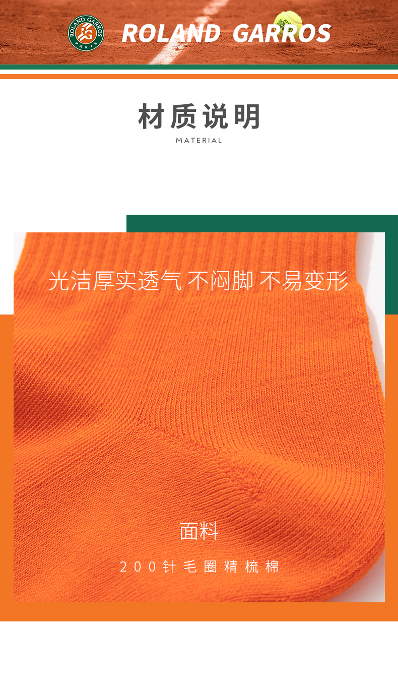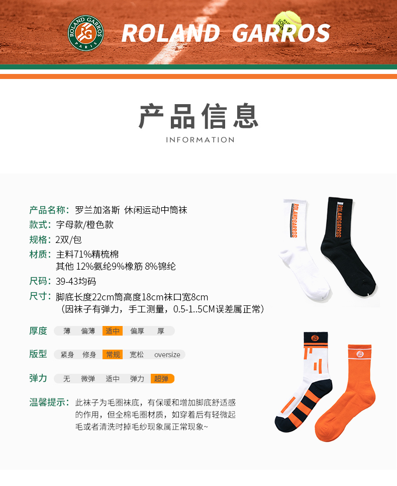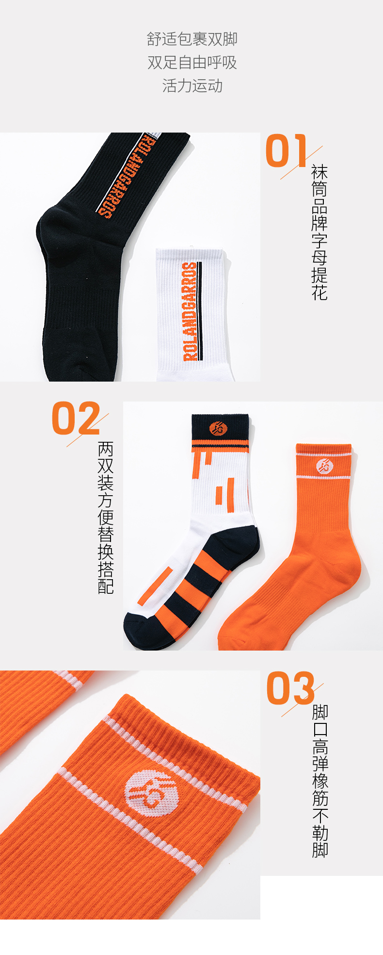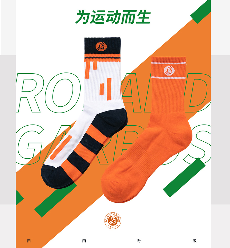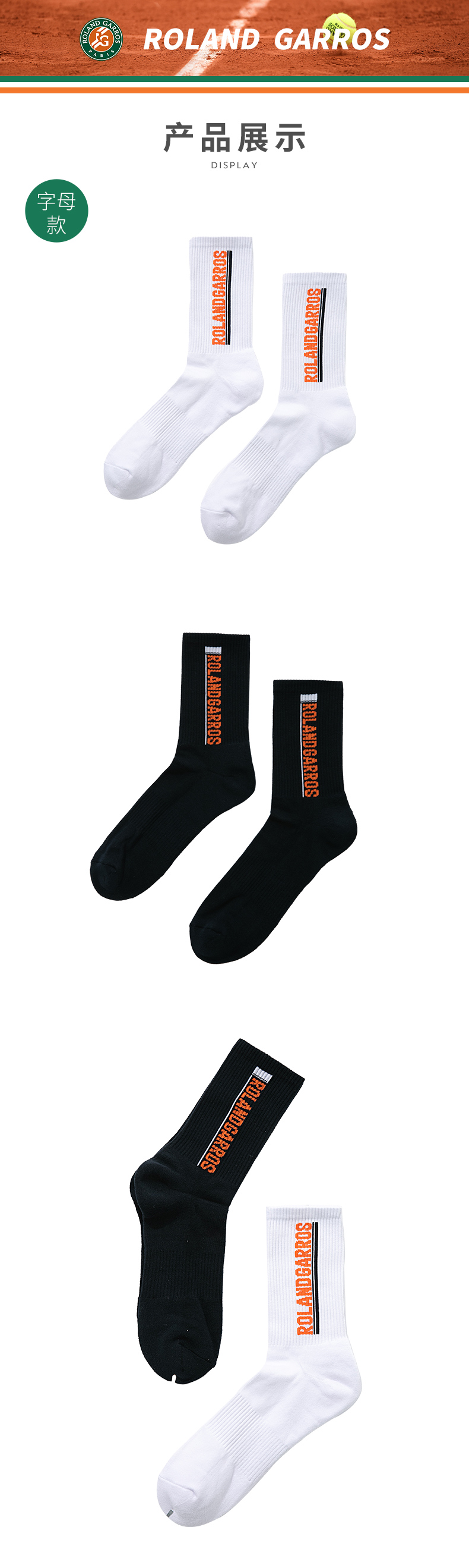 罗兰加洛斯法网官方正品2021年新款运动休闲袜两双中筒袜