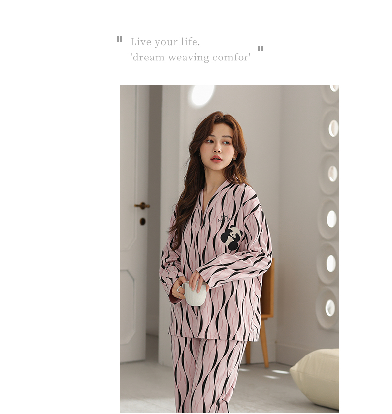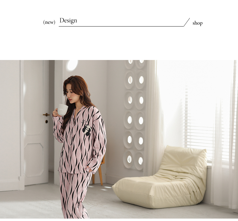 可人儿小众设计师新款奥力绵女士睡衣春秋长袖时尚可外出家居服