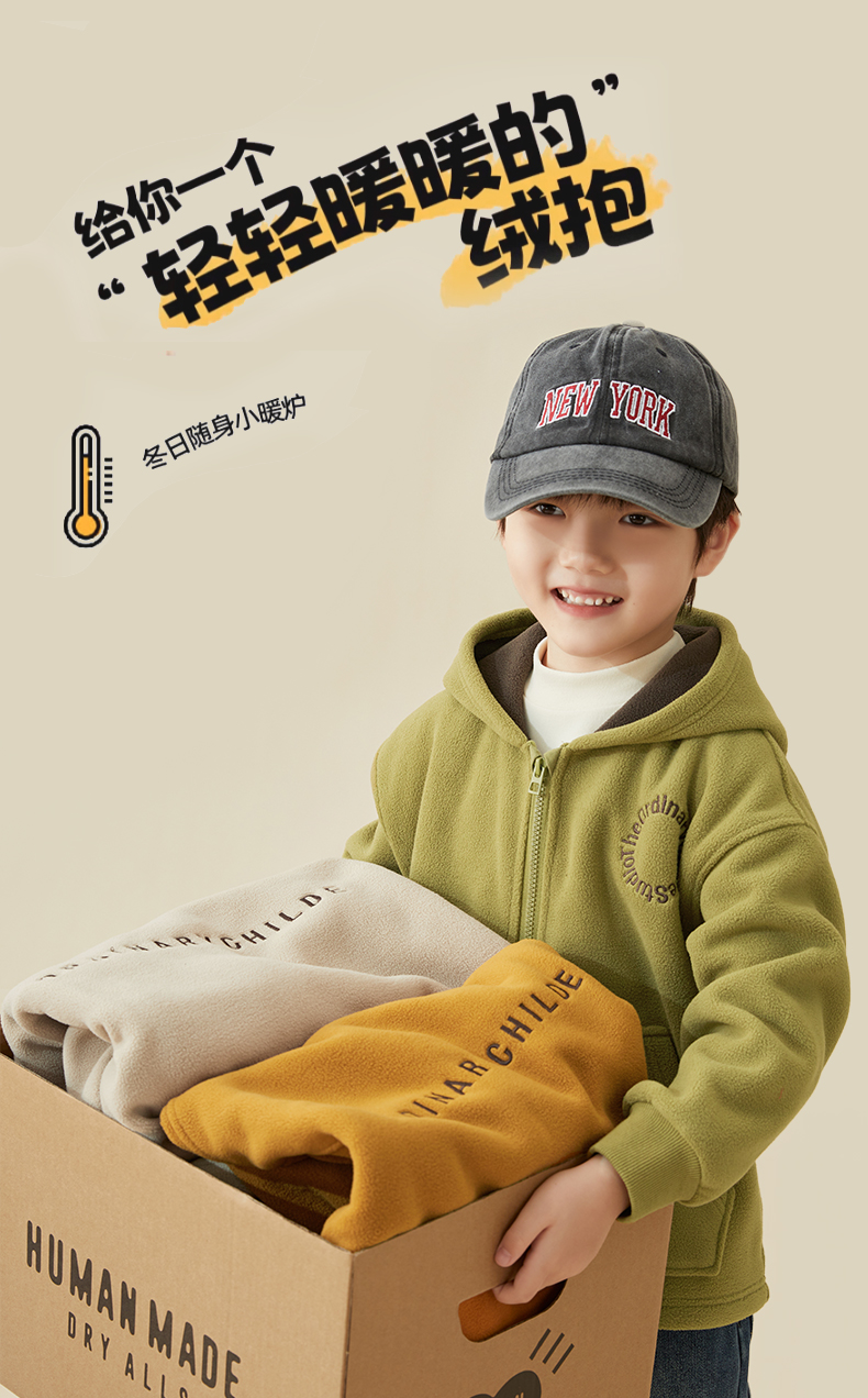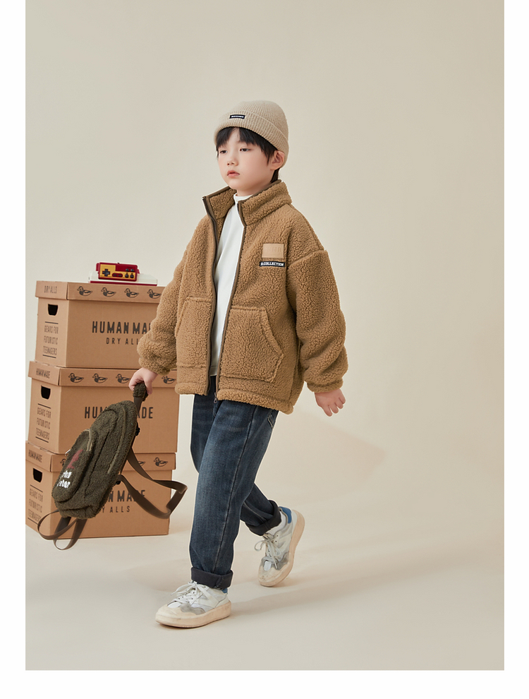 【件件底价,童装双倍积分】多多家男童外套春秋款秋冬装新款儿童双面摇粒绒连帽棉服棉衣8320