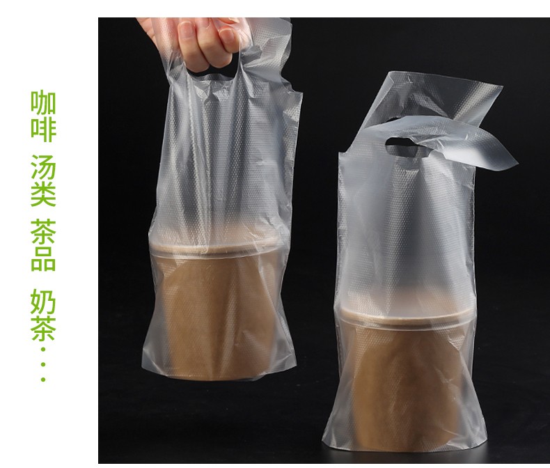 单/双杯饮品打包袋 饮品店外卖包装袋 果汁饮料奶茶打包袋 100入