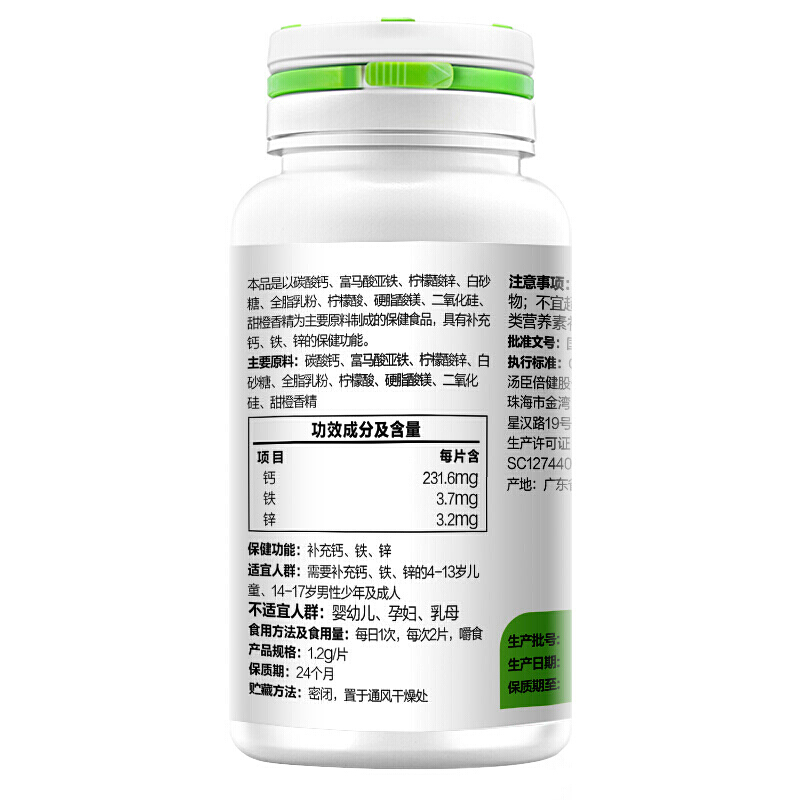 汤臣倍健牌 钙铁锌咀嚼片 1.2g*60片