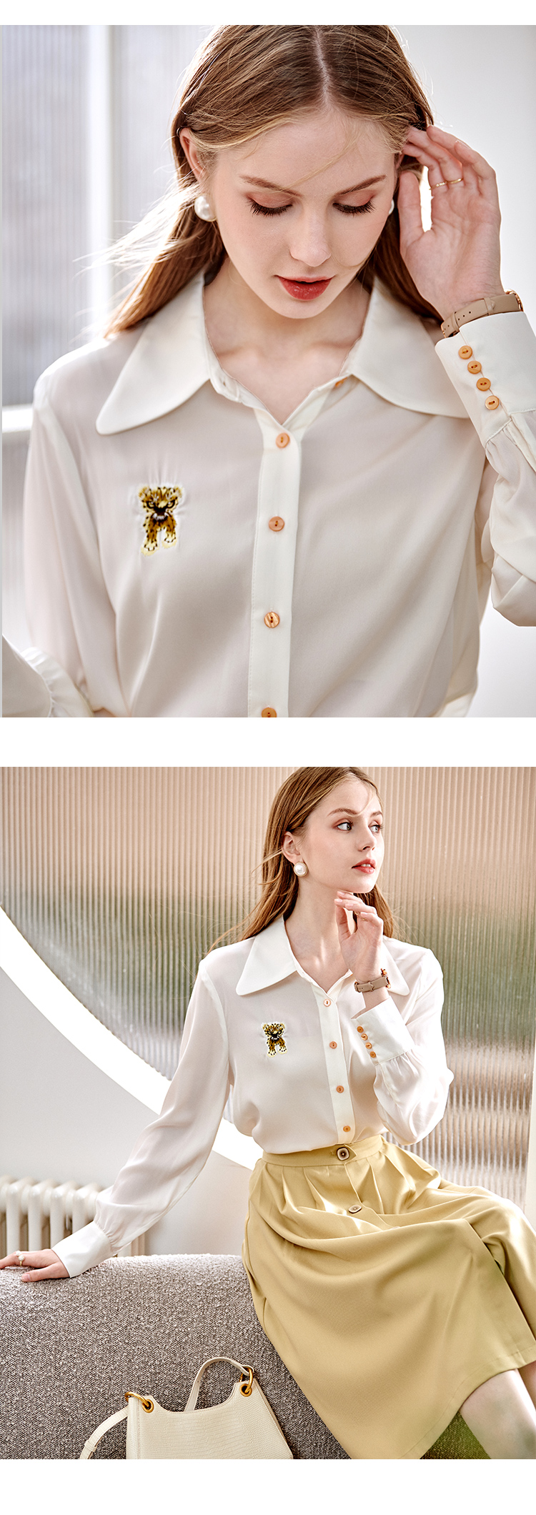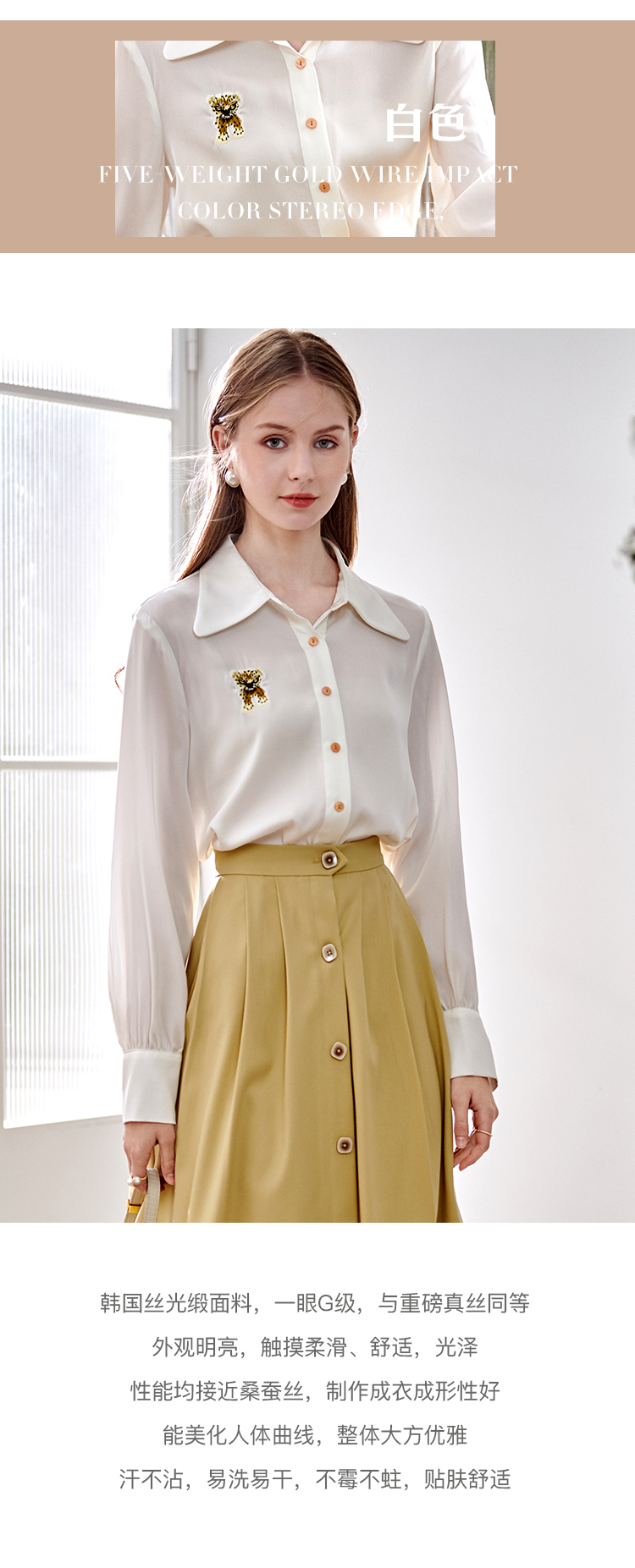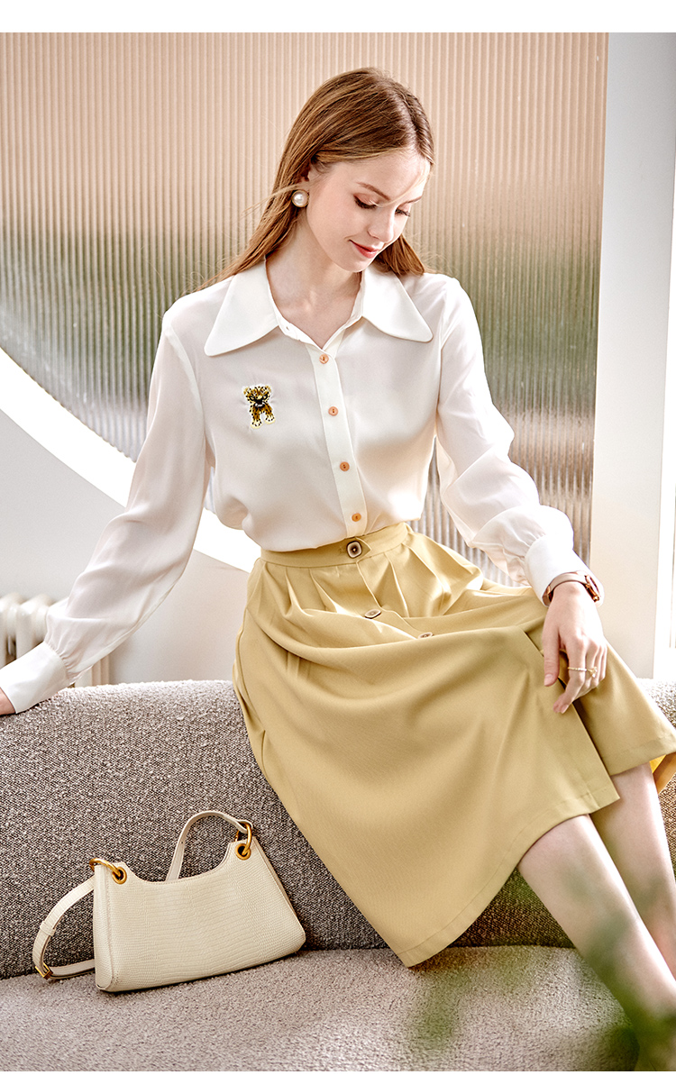 欧芮儿翻领长袖衬衫女春季新款时髦知性简约刺绣优雅俏皮减龄上衣