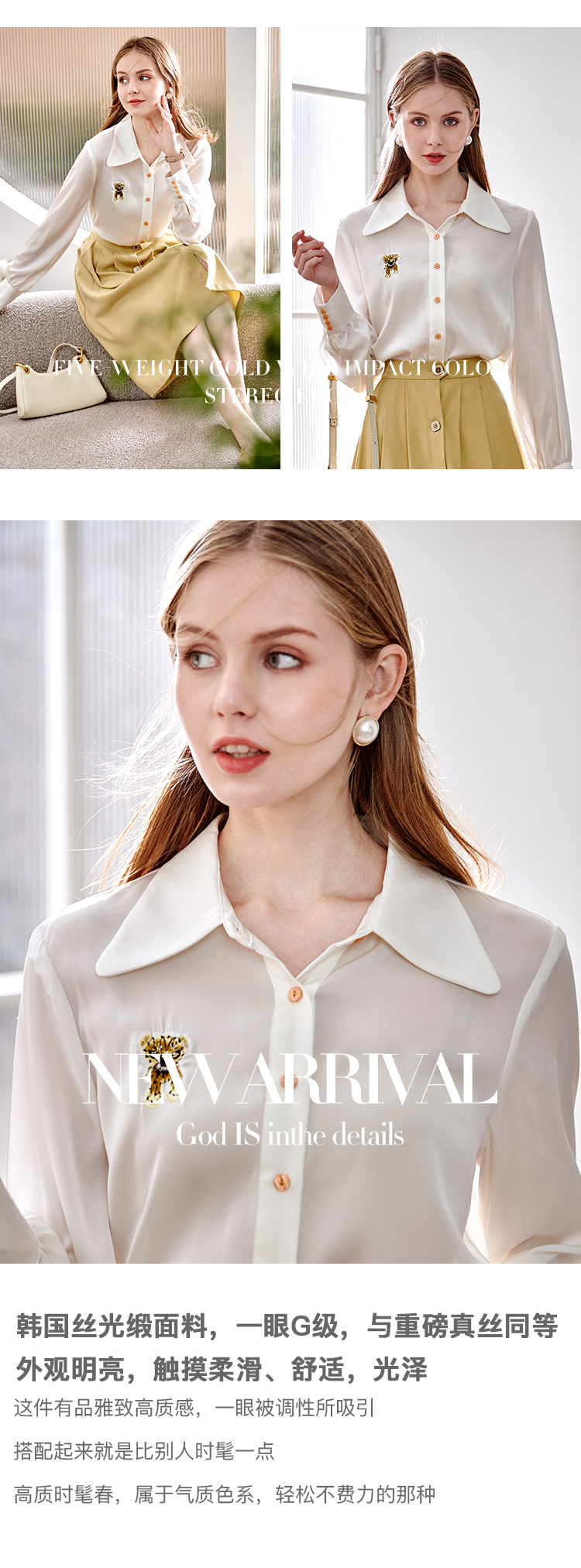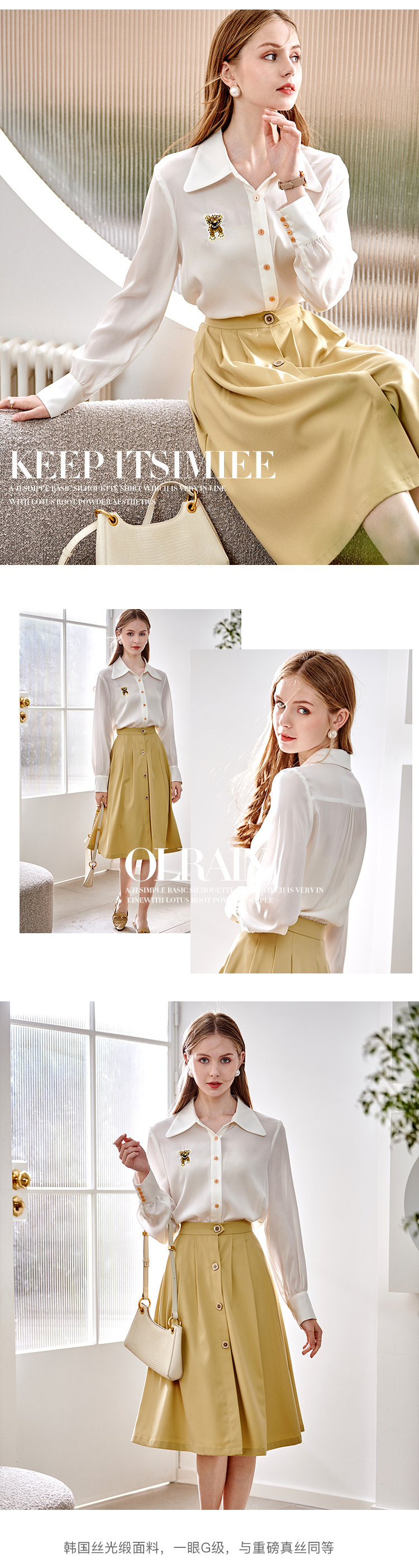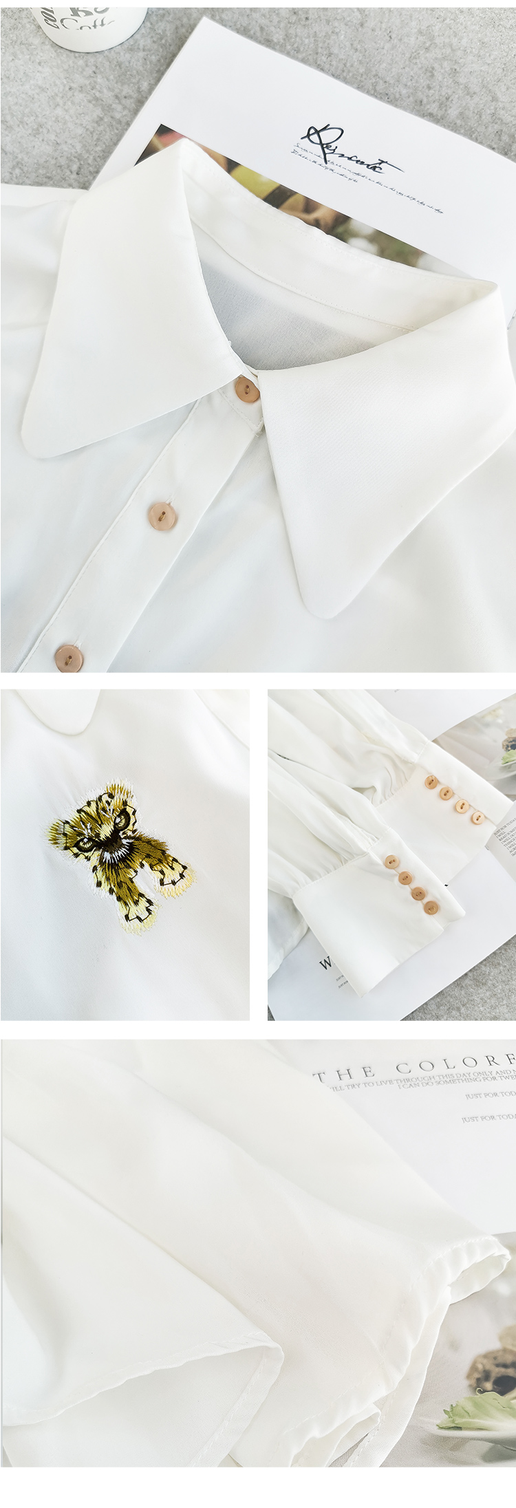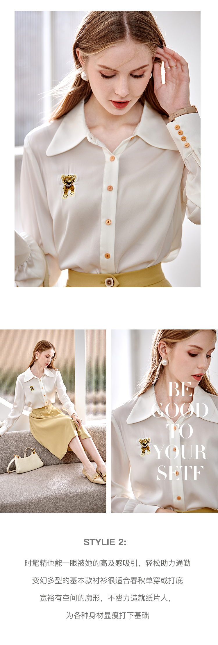 欧芮儿翻领长袖衬衫女春季新款时髦知性简约刺绣优雅俏皮减龄上衣