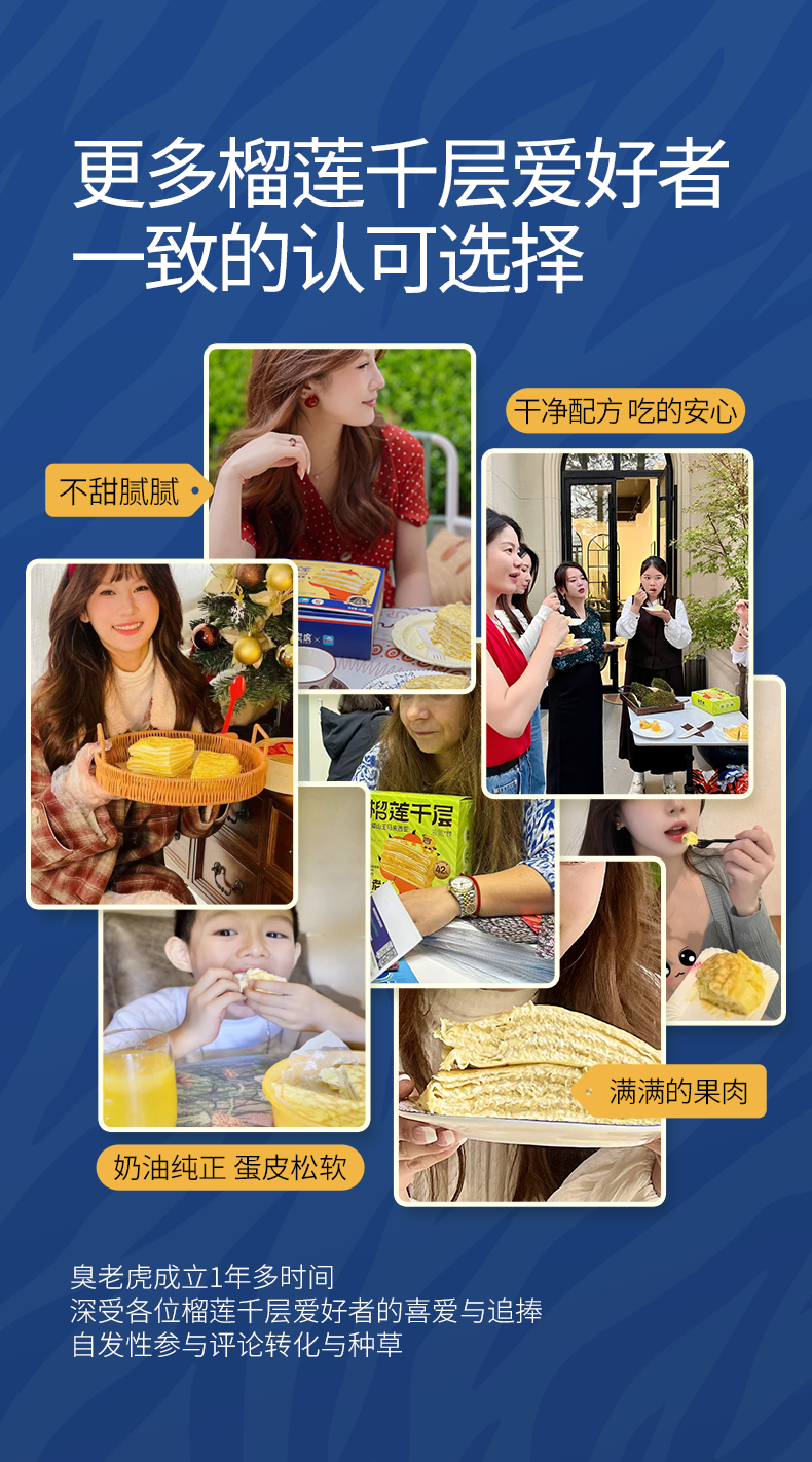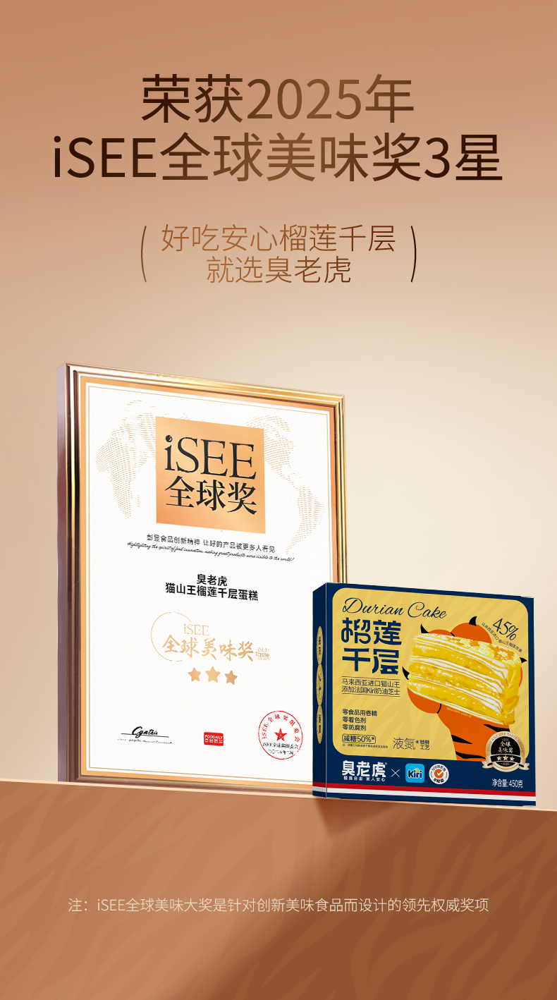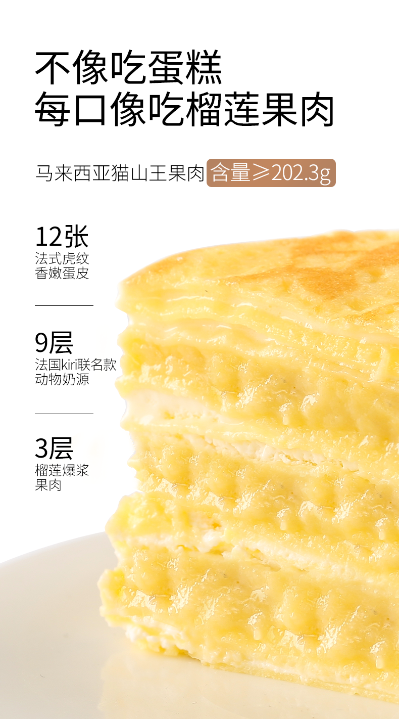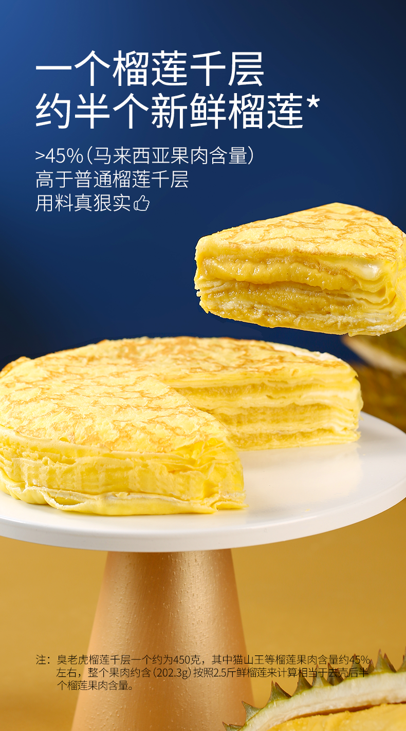 【臭老虎猫山王虎皮榴莲千层】比吃榴莲更过瘾!45%进口猫山王榴莲果肉占比,一口爆浆