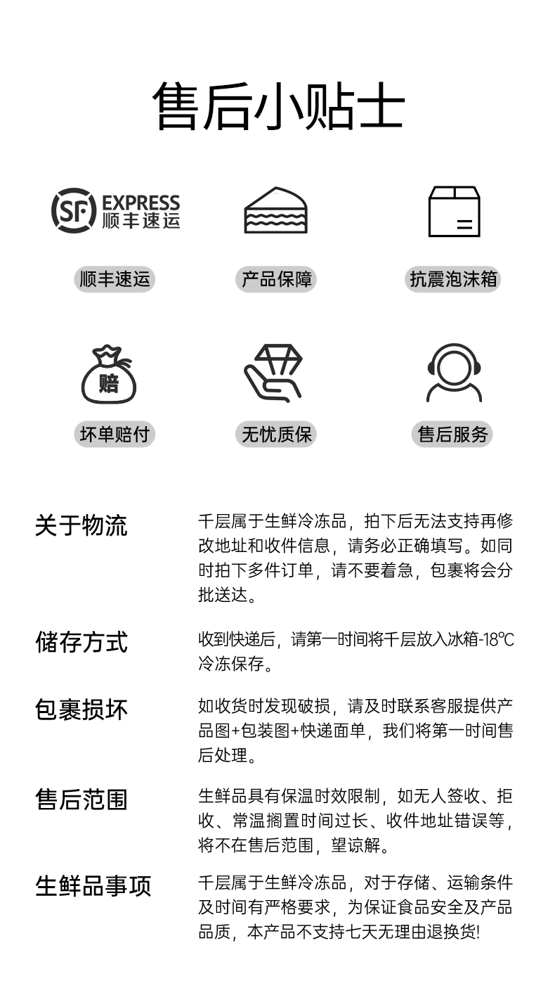 【售后政策】因为冻品,平台有发货信息后,不支持退款,不支持拦截,不支持拒签不支持退换货