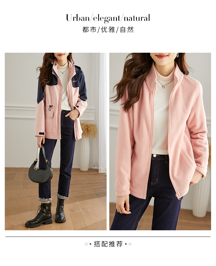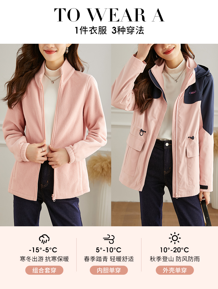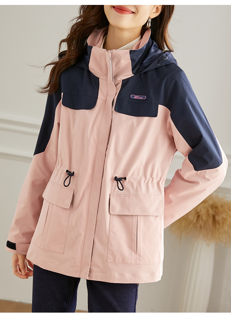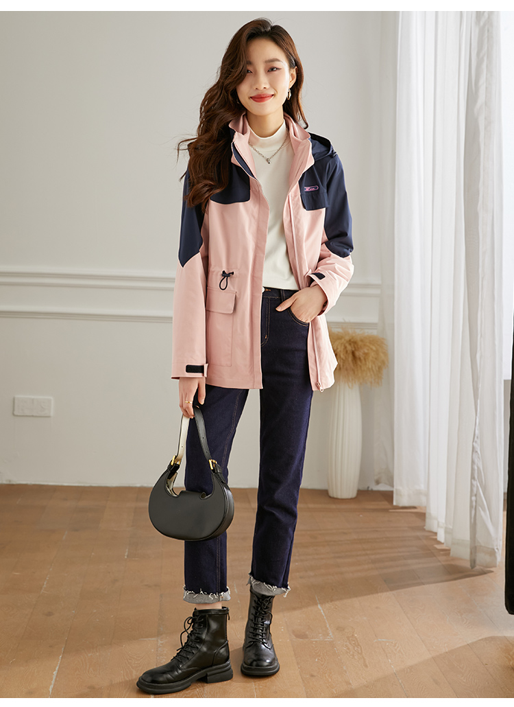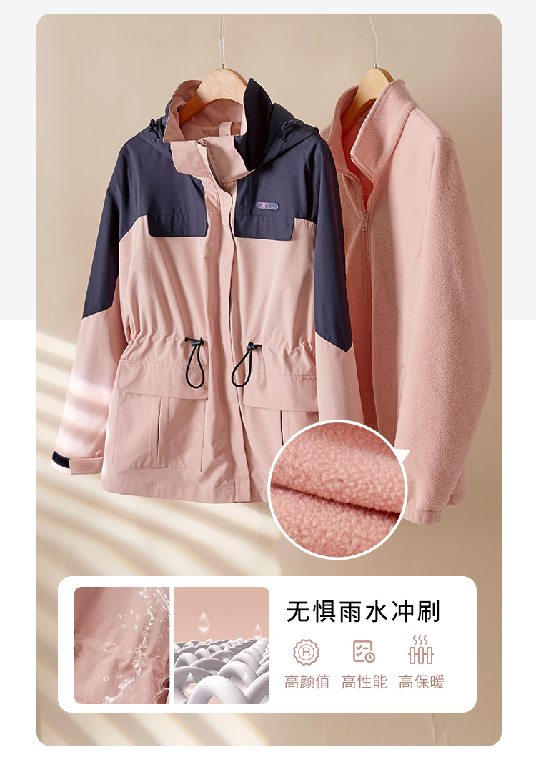 【1件77折】熙世界三合一冲锋衣加绒工装户外防风派克服外套女2024秋冬季新款