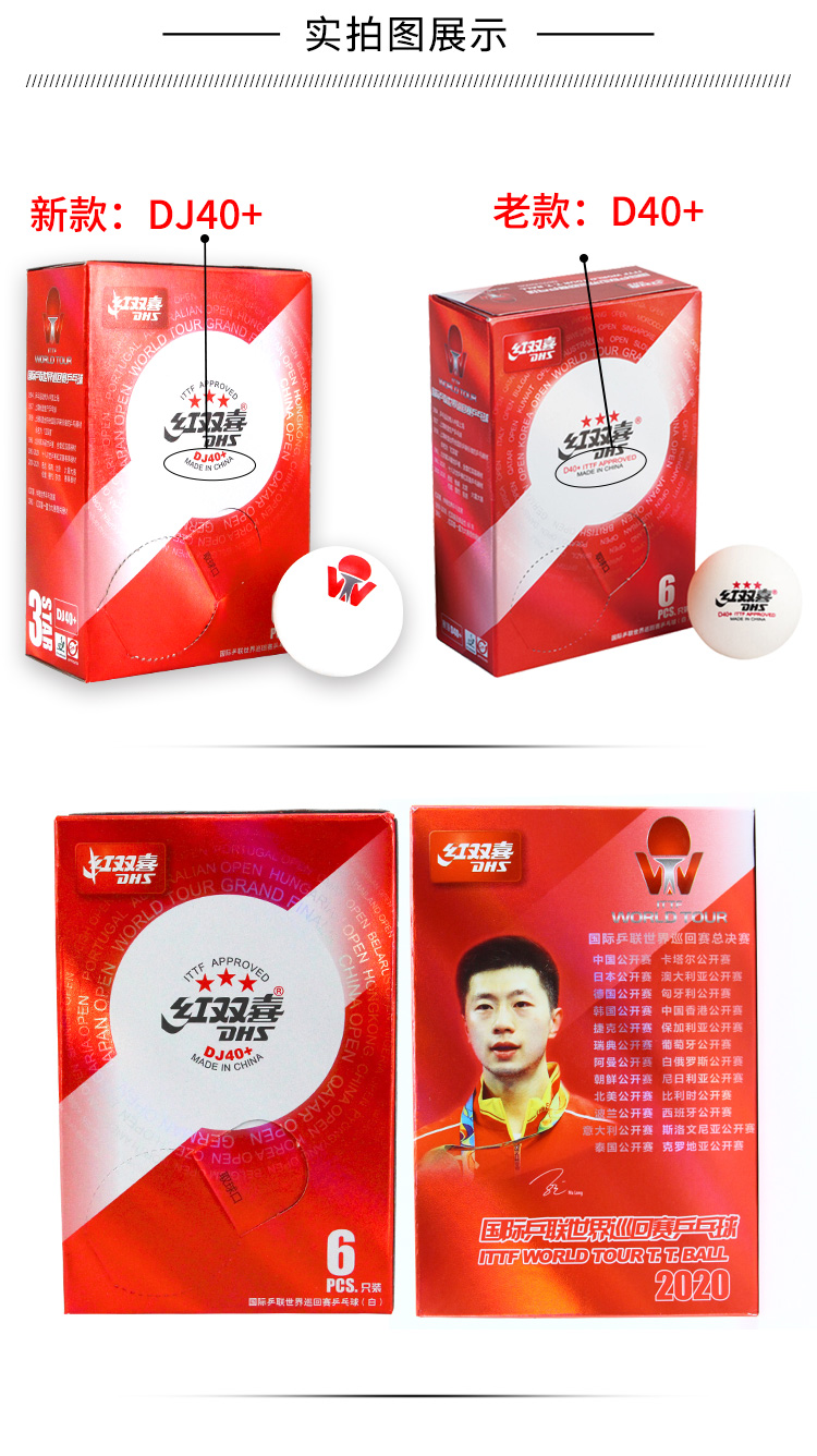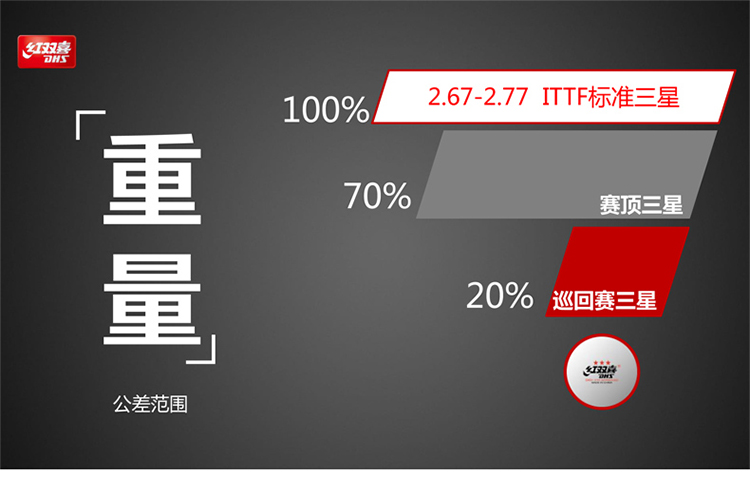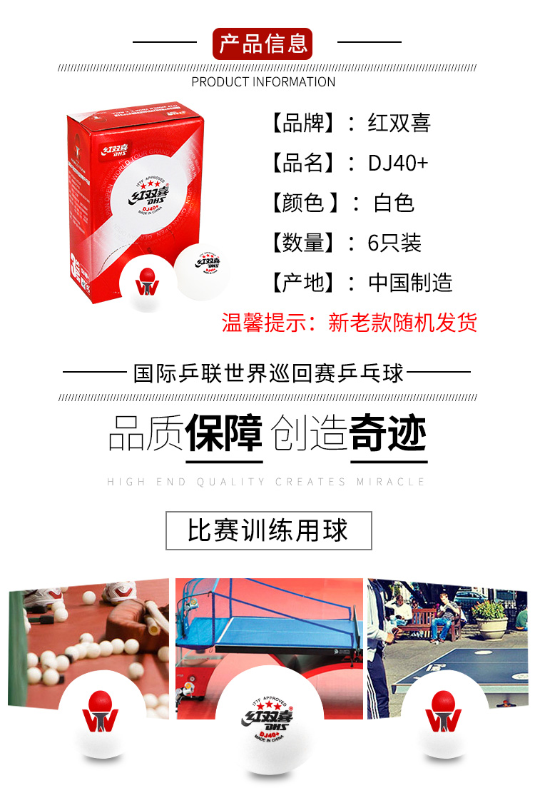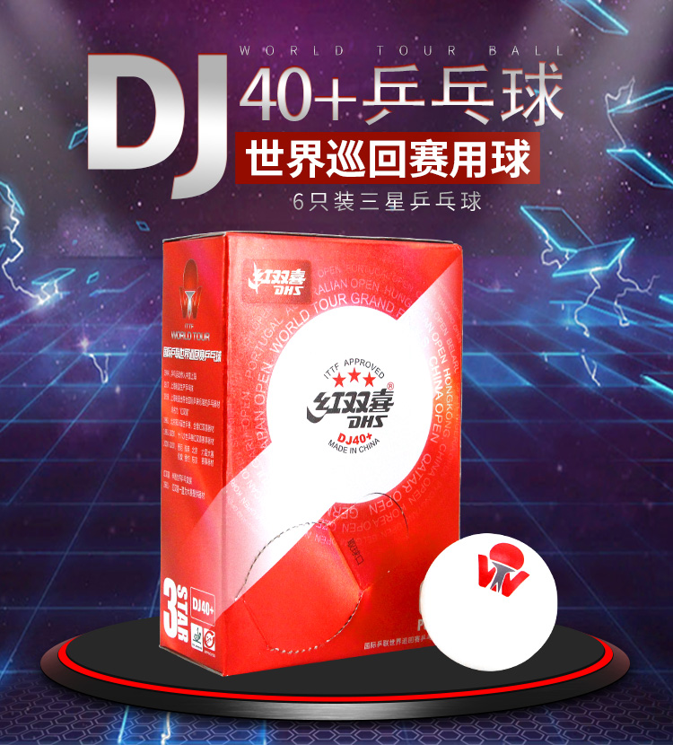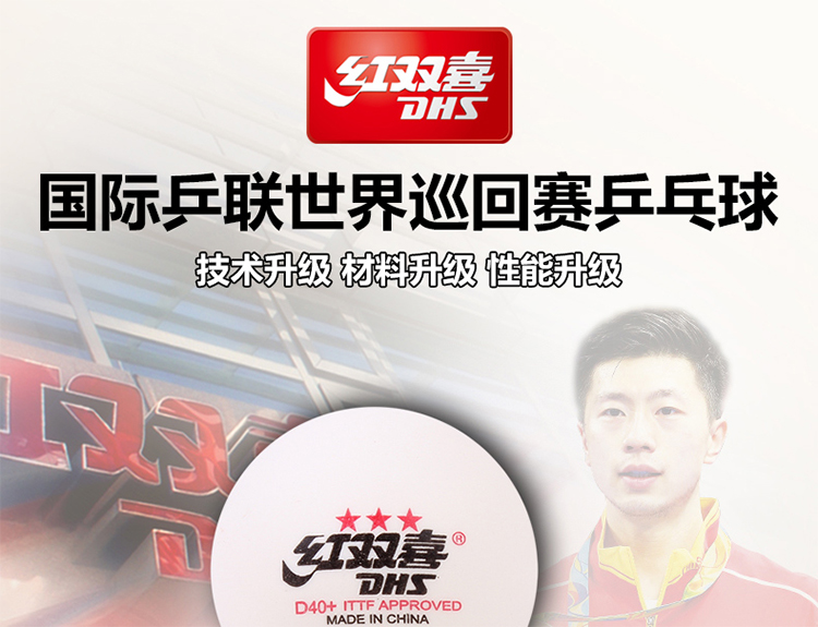 红双喜(DHS)国际乒联巡回赛三星乒乓球比赛用球3星赛顶DJ40+ 白色