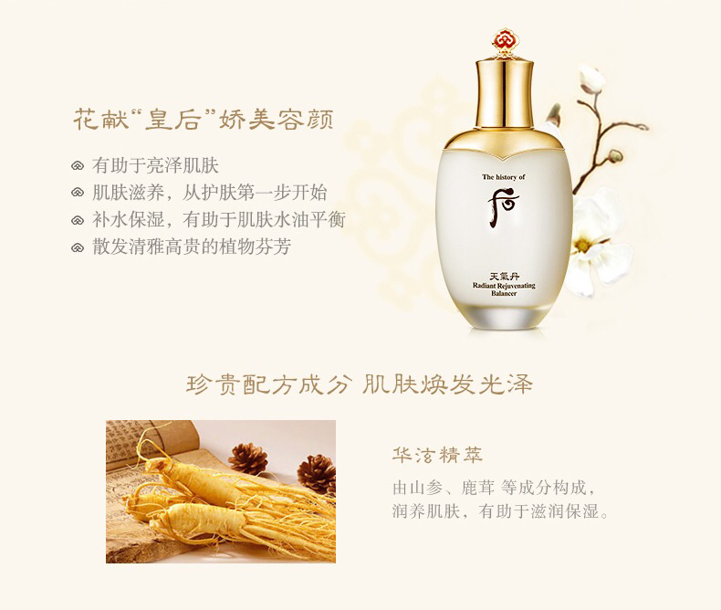 Whoo后-天气丹爽肤水-花献滋养液150ml保湿化妆水-天气丹乳液110ml-会员6折