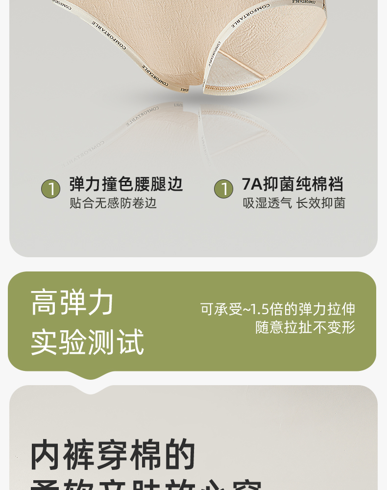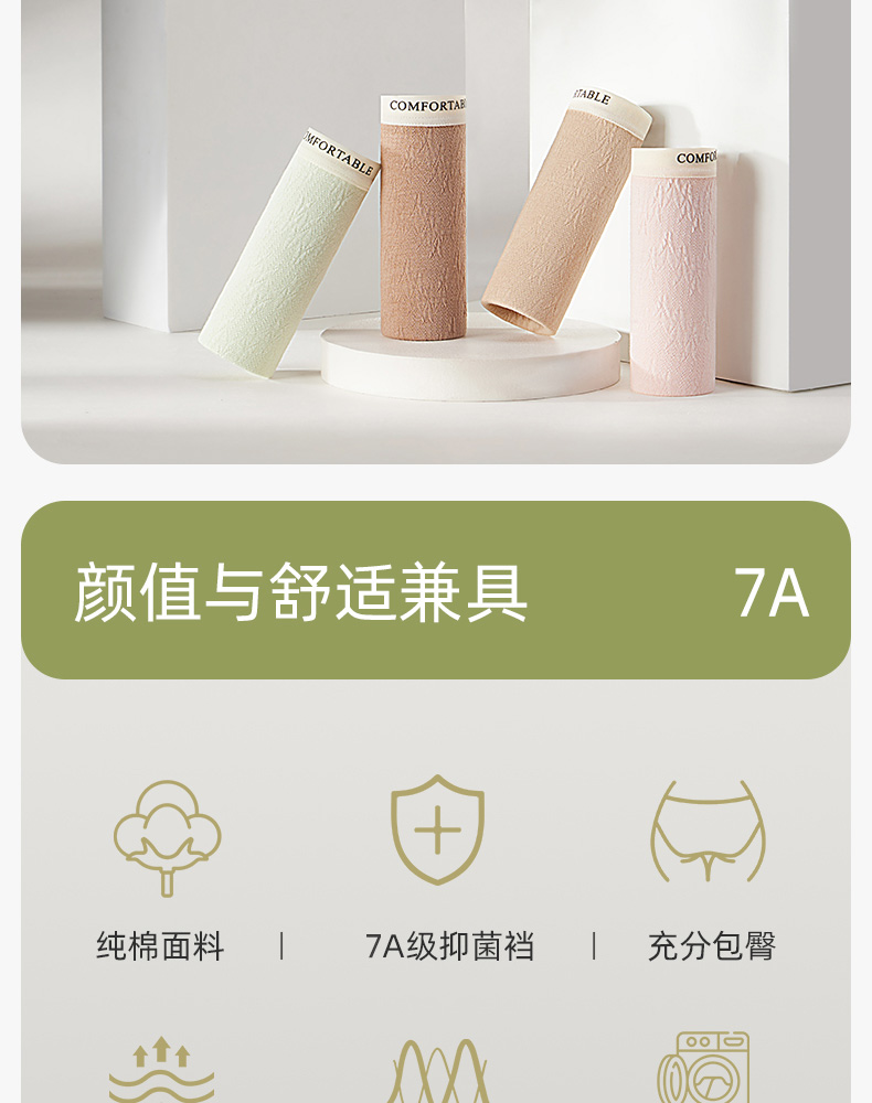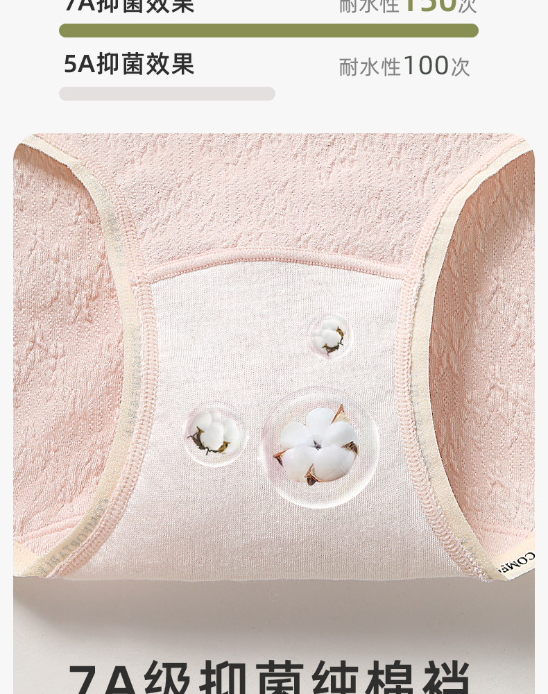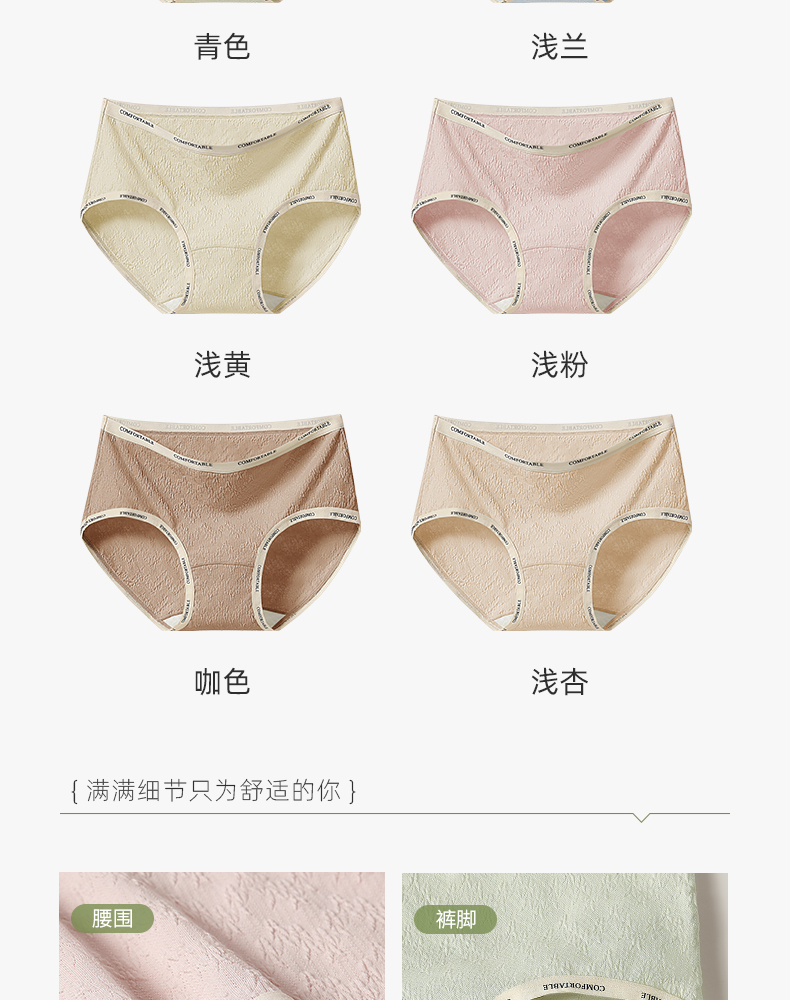【7A抑菌】洁丽雅5条装中腰纯棉女士内裤裸感舒适三角内裤女纯棉