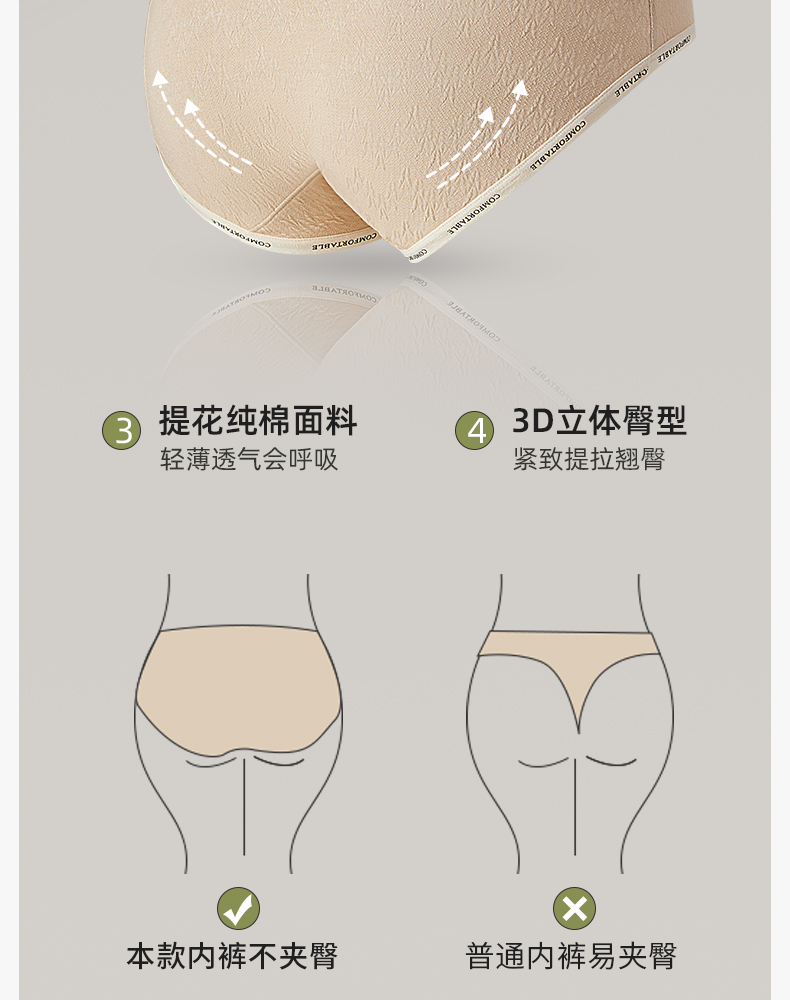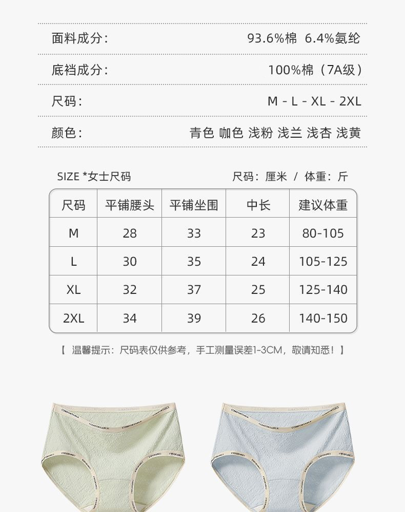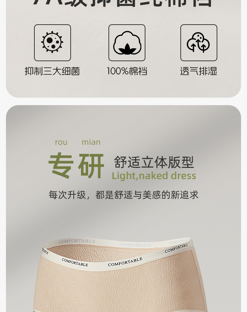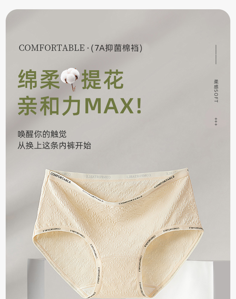 【7A抑菌】洁丽雅5条装中腰纯棉女士内裤裸感舒适三角内裤女纯棉
