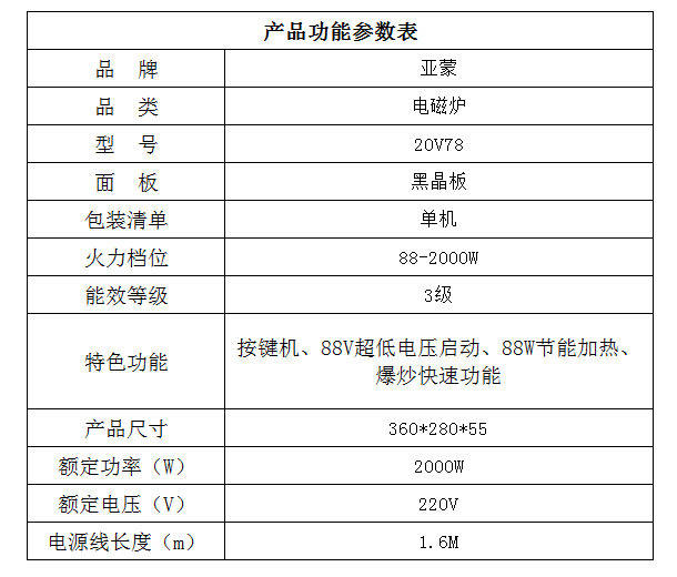 亚蒙 电磁炉 20V78 2000W 节能 爆炒