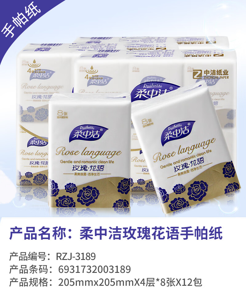 柔中洁玫瑰花语手帕纸(12包)RZJ-3189