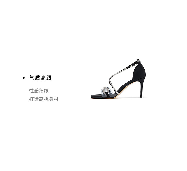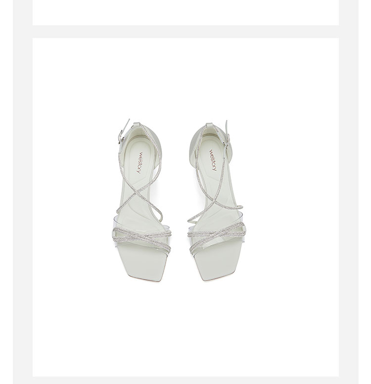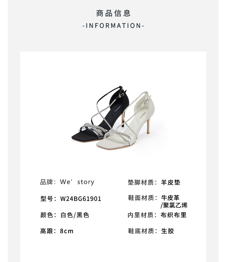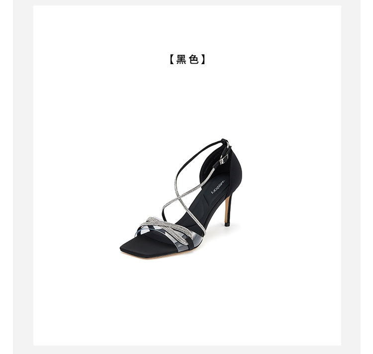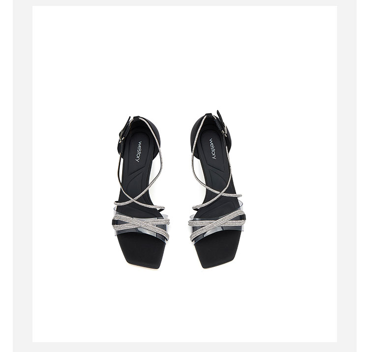 westory夏季新款法式全细闪钻交叉带细高跟中空礼服鞋凉鞋W24BG61901